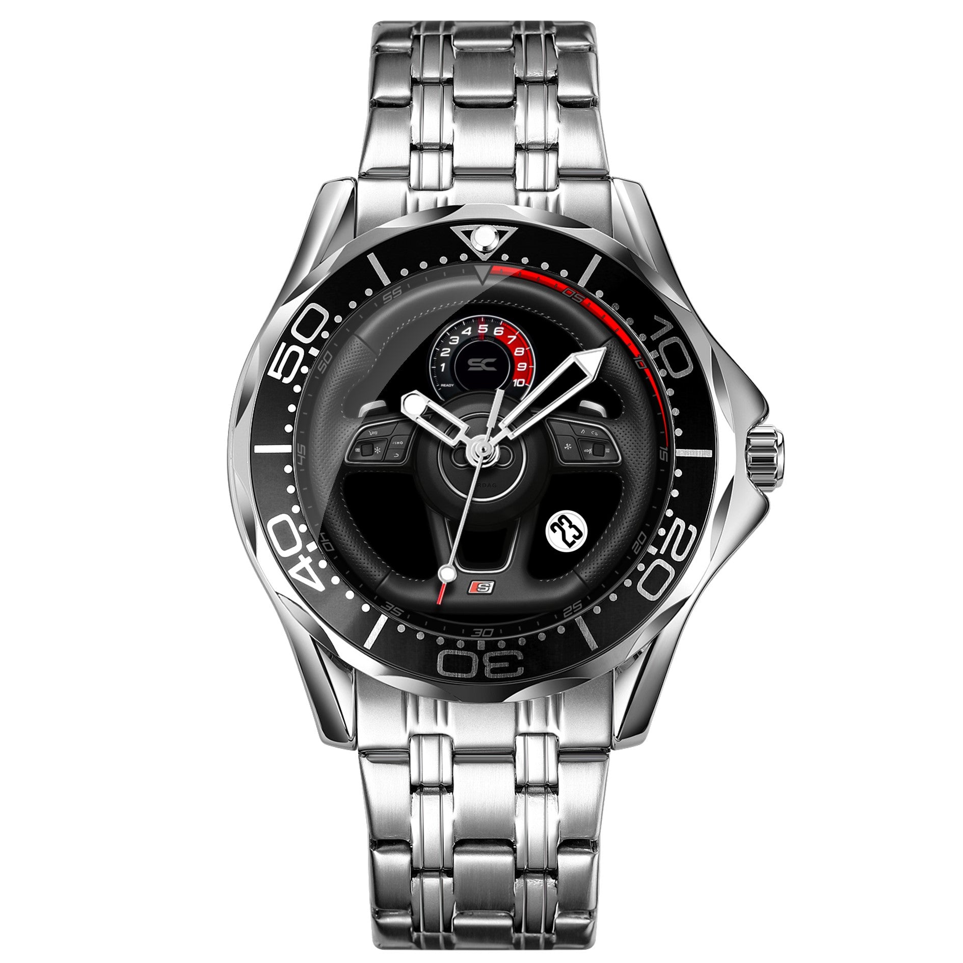 L'orologio monta un movimento al quarzo Epson giapponese con datario.