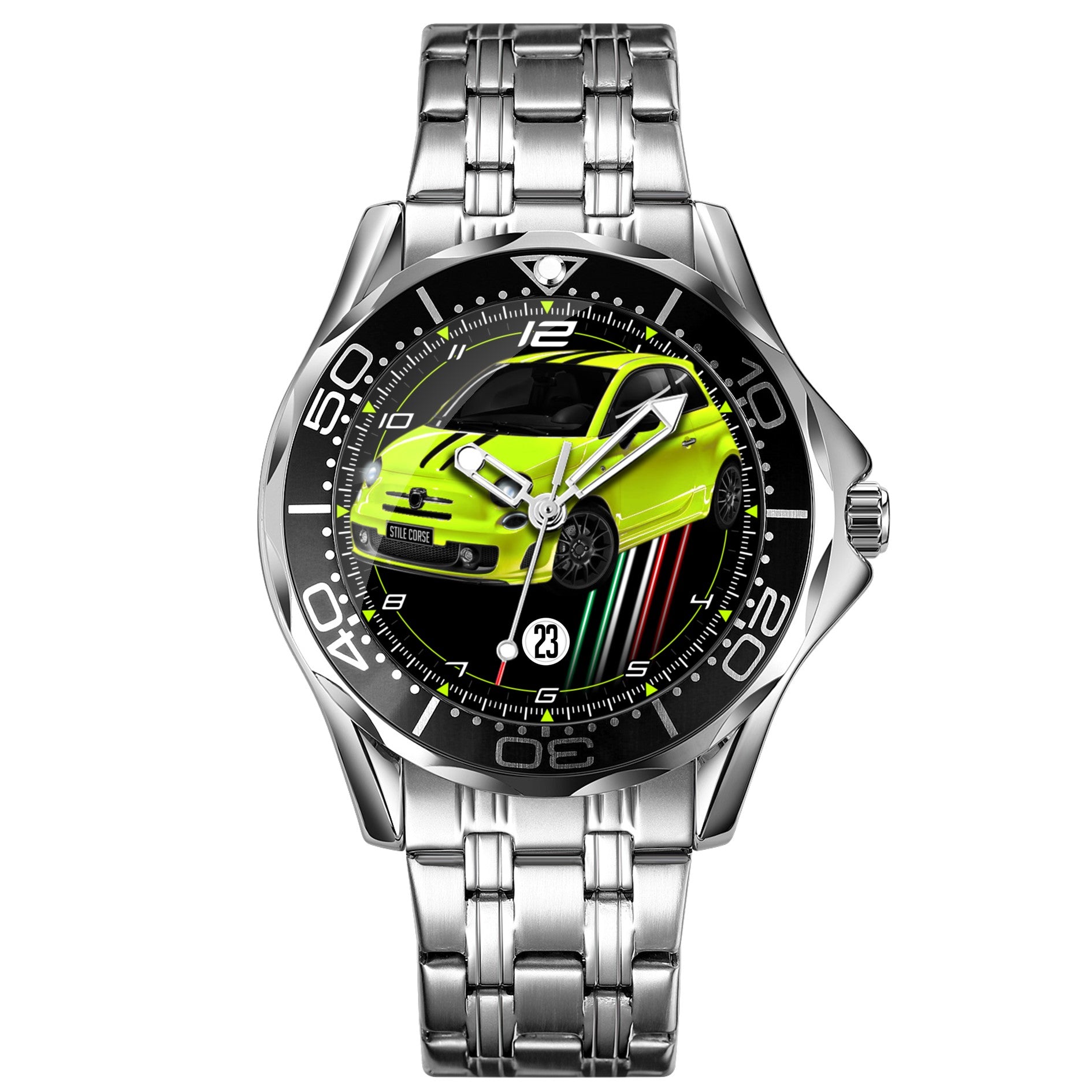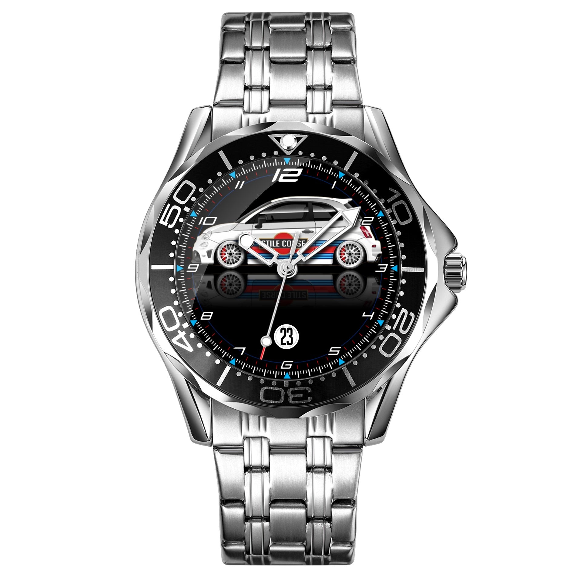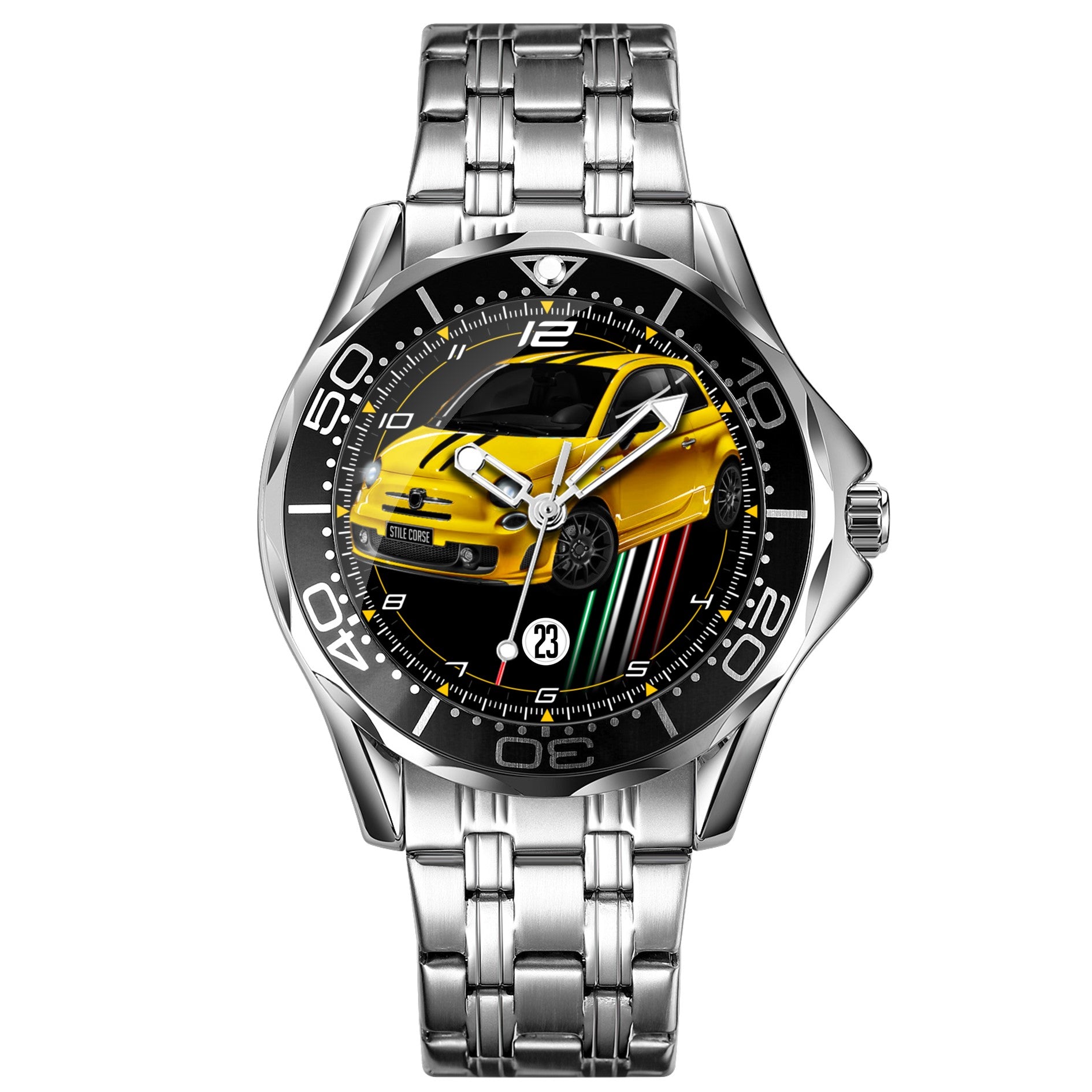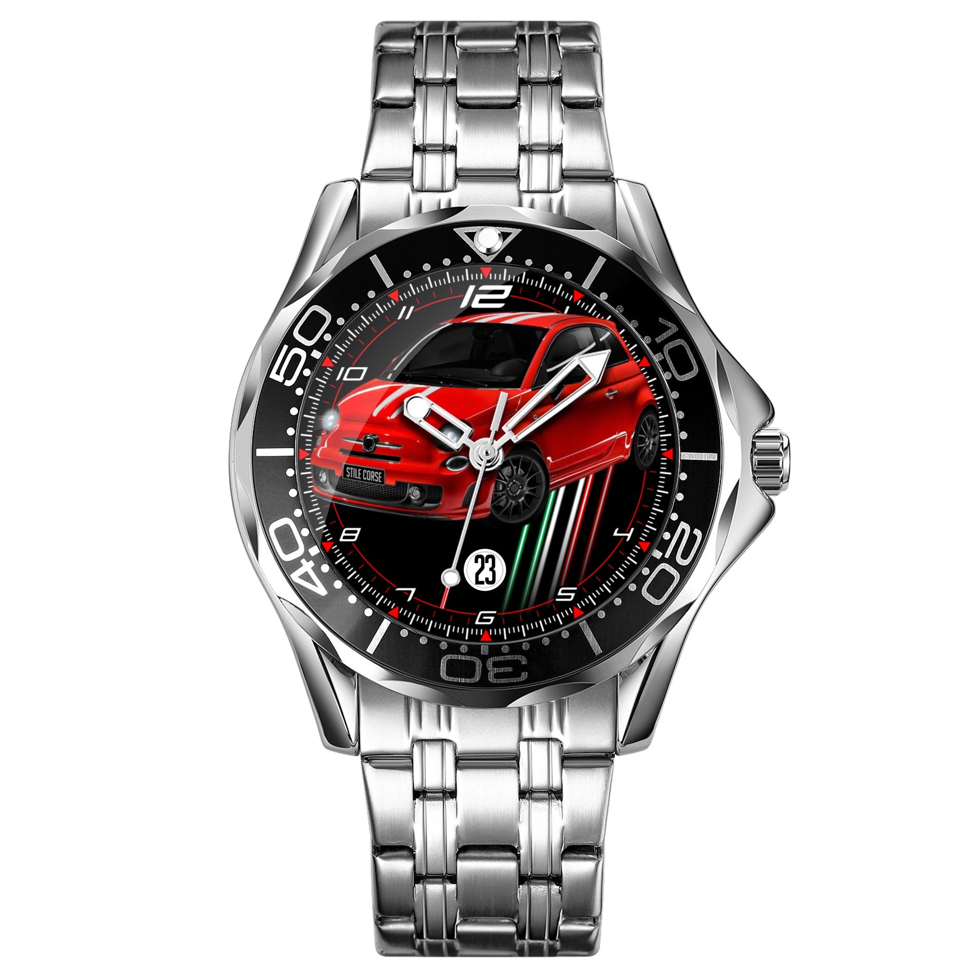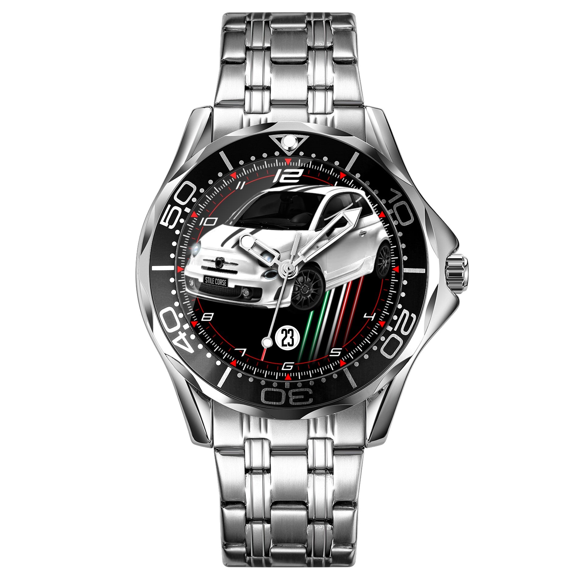 L'orologio monta un movimento al quarzo Epson giapponese con datario.