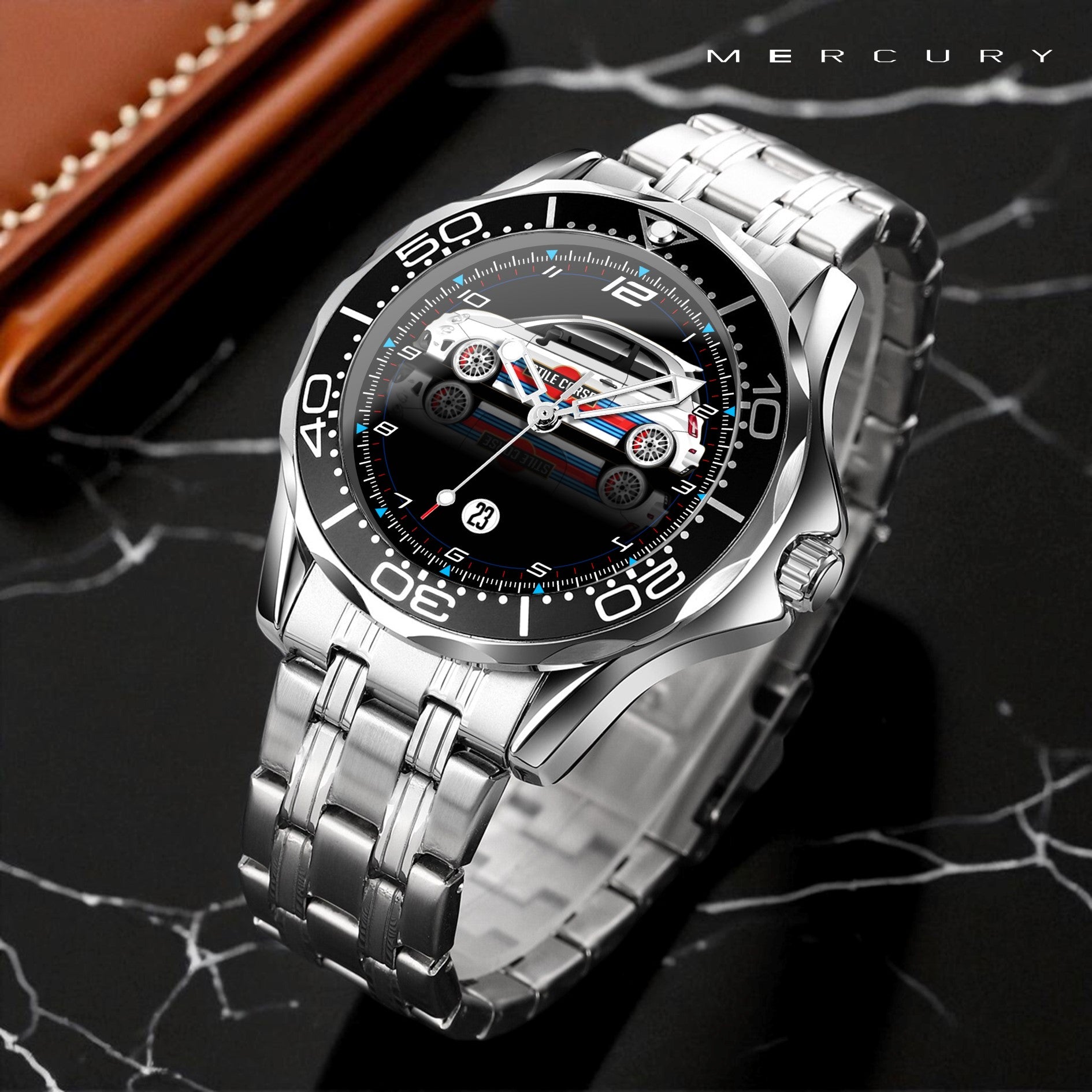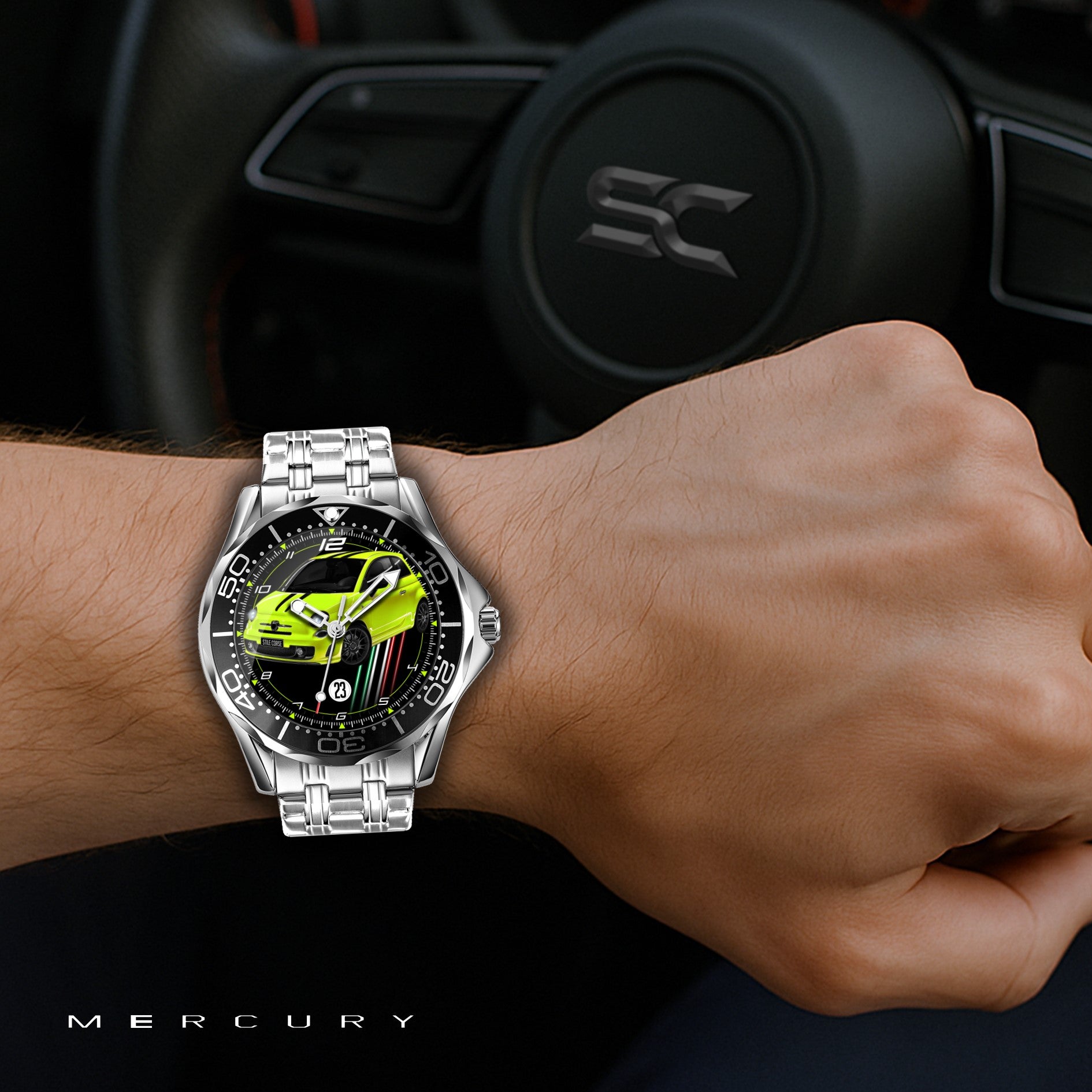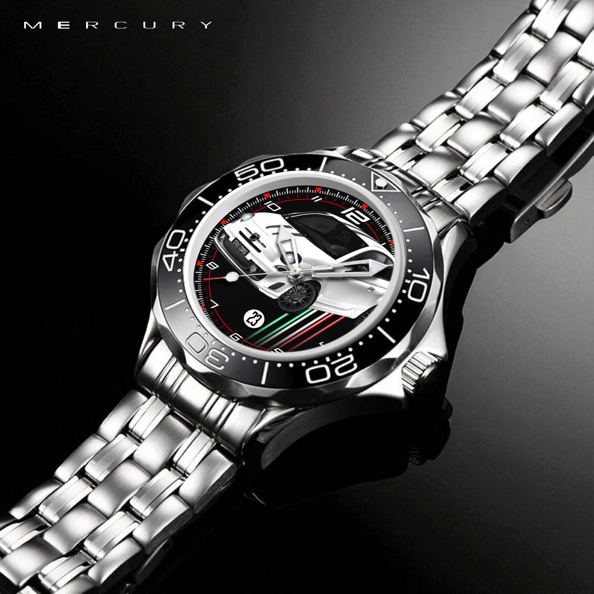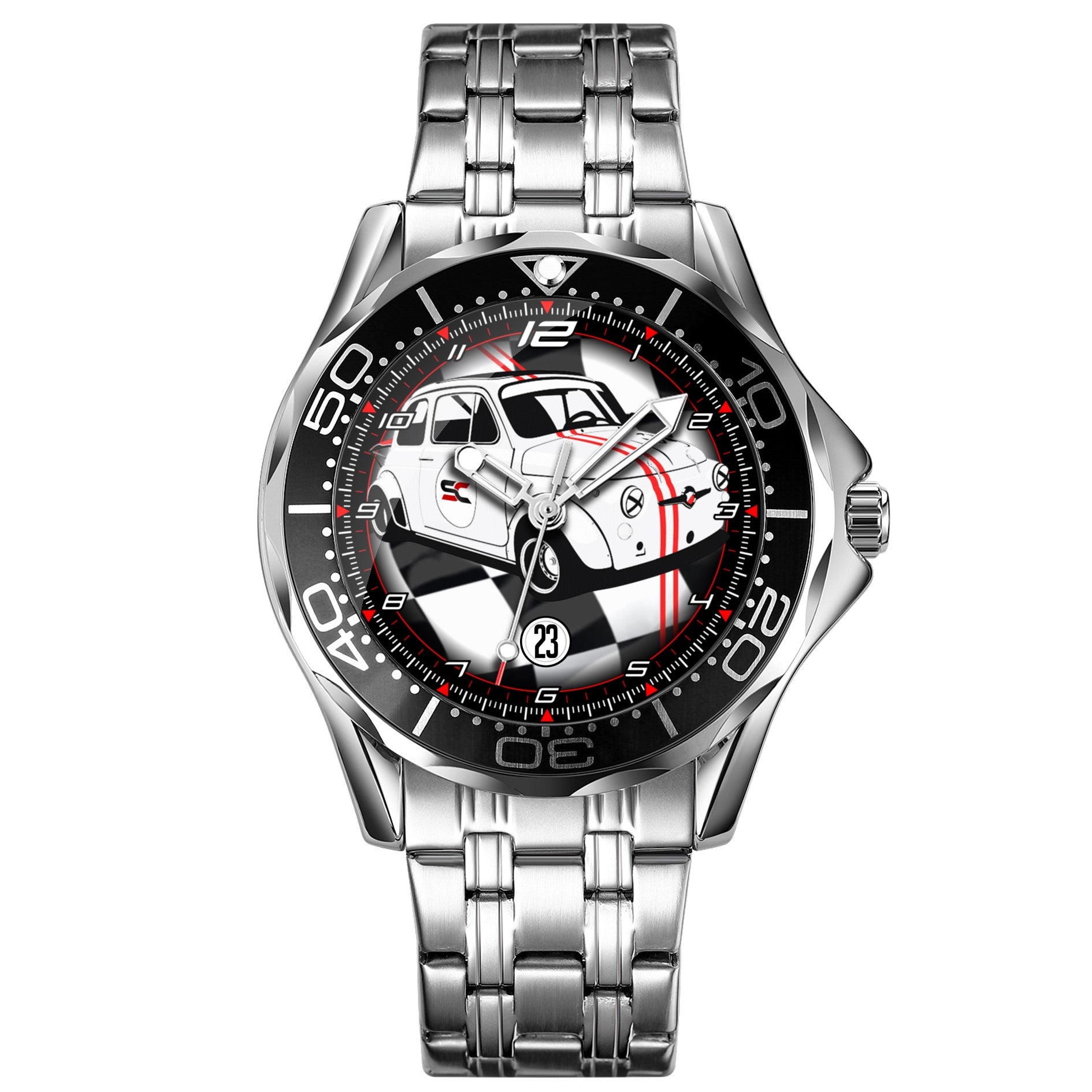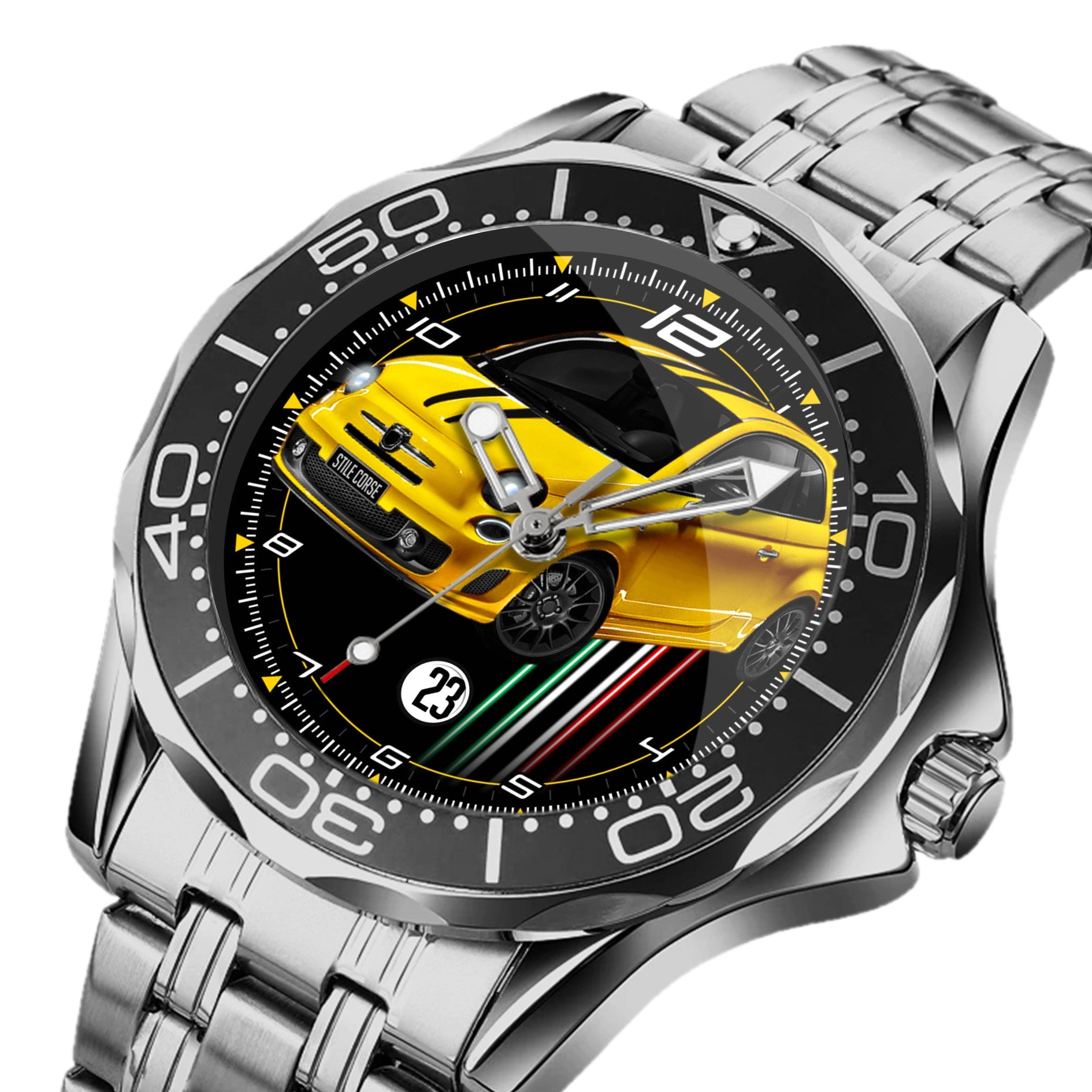 L'orologio monta un movimento al quarzo Epson giapponese con datario.