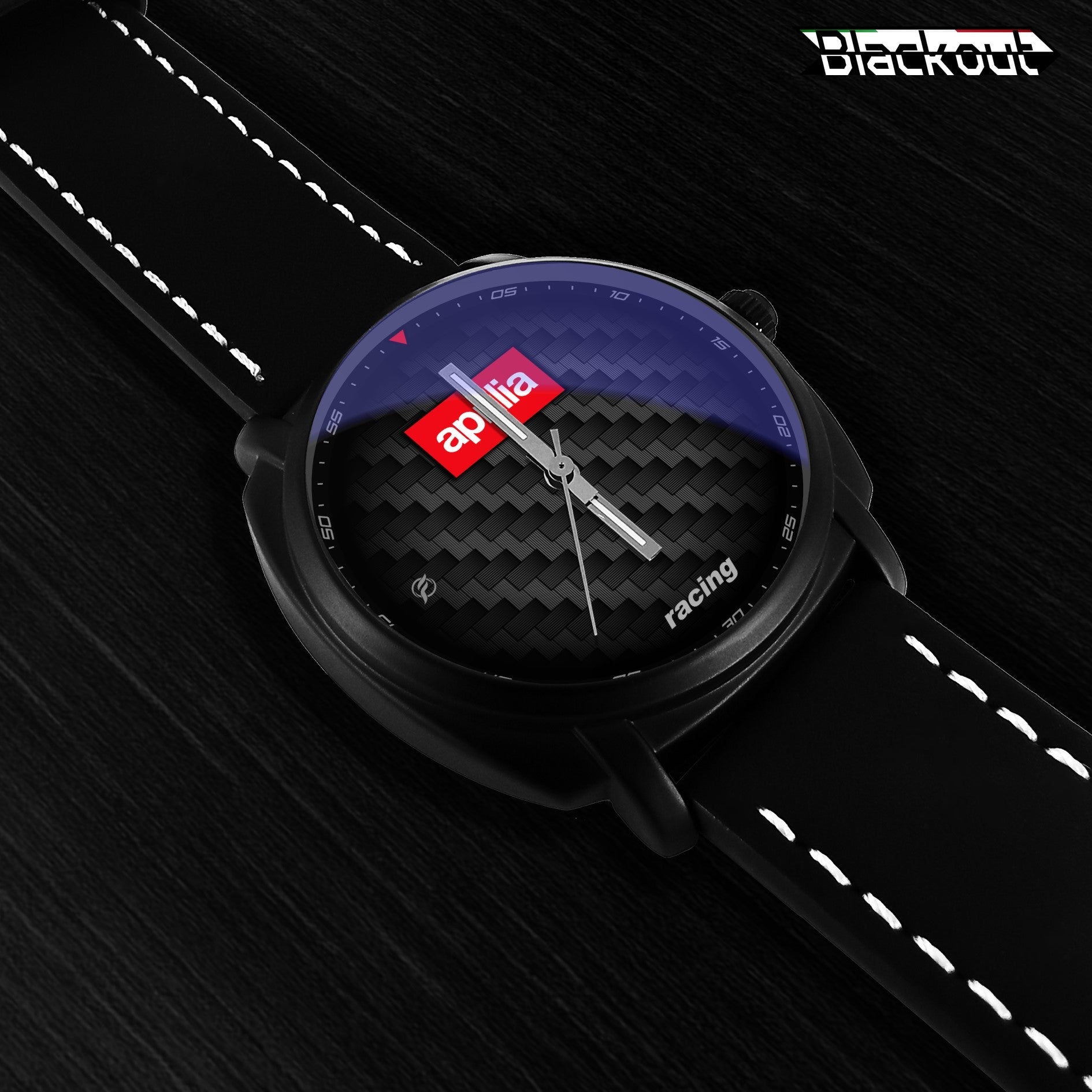 Caratteristiche tecniche dell'orologio Blackout: confezione in cartone rivestito inciso a laser, quadrante con superficie stampata da Canon, design unisex. La cassa ha un diametro di 42 mm ed è realizzata in acciaio inossidabile con finitura nera opaca. Il cinturino ha una larghezza di 22 mm ed è in eco-pelle con cuciture bianche. L'orologio è dotato di una fibbia come tipo di fermaglio e utilizza un movimento al quarzo Epson, alimentato a batteria. Il peso complessivo è di 56 grammi e la resistenza all'acqua è garantita fino a 3 ATM.