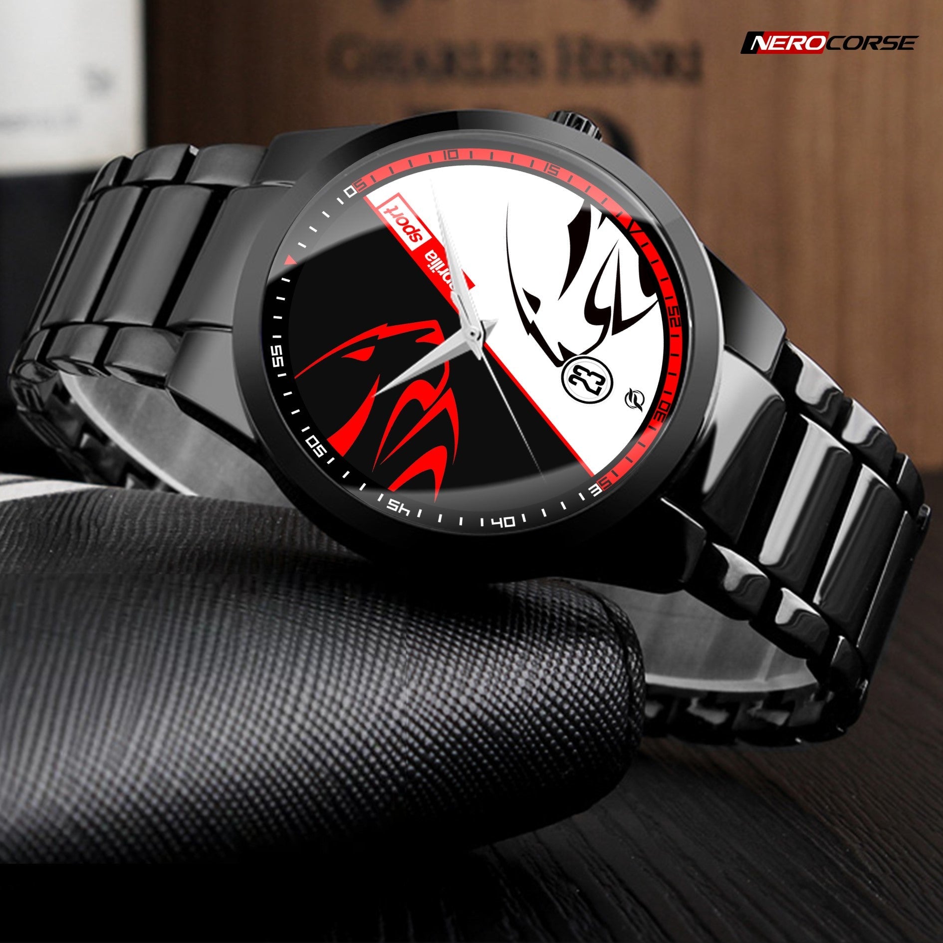 Caratteristiche tecniche dell'orologio modello Nerocorse: confezione in cartone rivestito inciso a laser. Il quadrante è realizzato con una superficie stampata ad alta definizione. Design unisex. La cassa ha un diametro di 40 mm ed è realizzata in acciaio inossidabile con finitura nera lucida. Il cinturino, anch'esso in acciaio inossidabile nero lucido, ha una larghezza di 20 mm e utilizza un sistema di chiusura con gancio rapido. L'orologio è dotato di un movimento al quarzo Epson alimentato a batteria. Il peso complessivo è di 114 grammi e offre una resistenza all'acqua fino a 3 ATM.