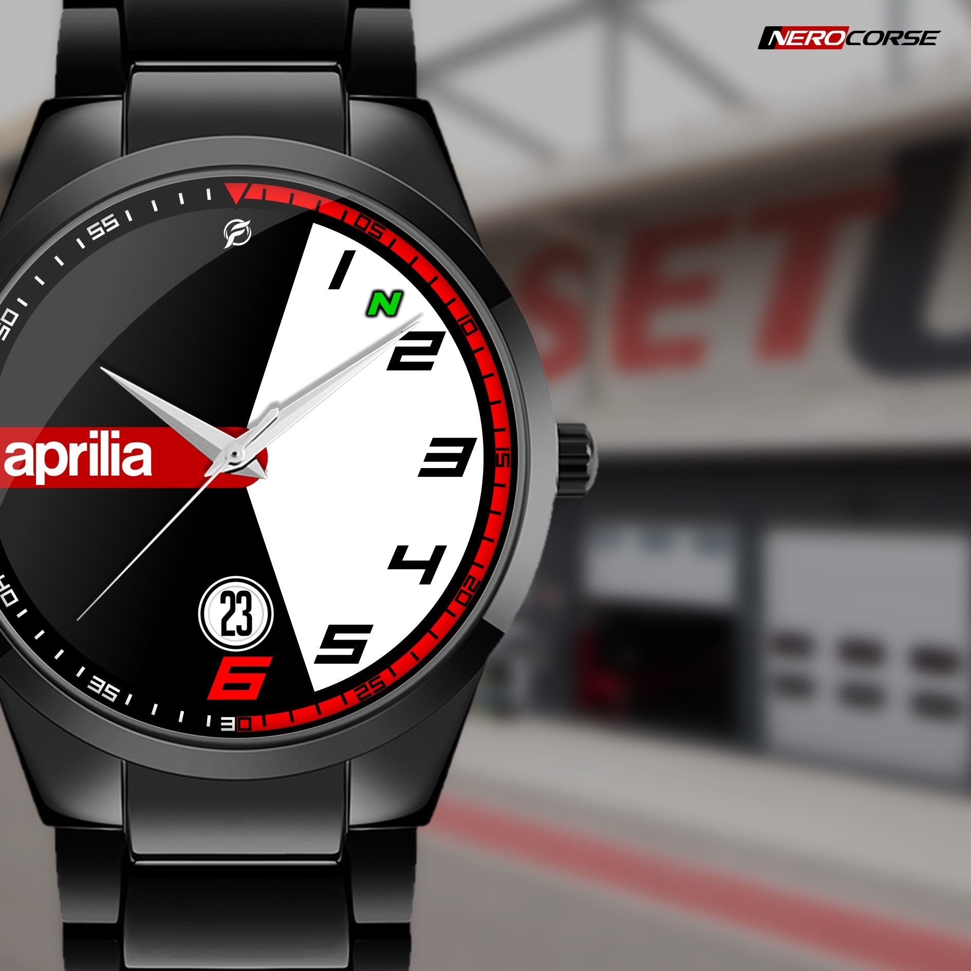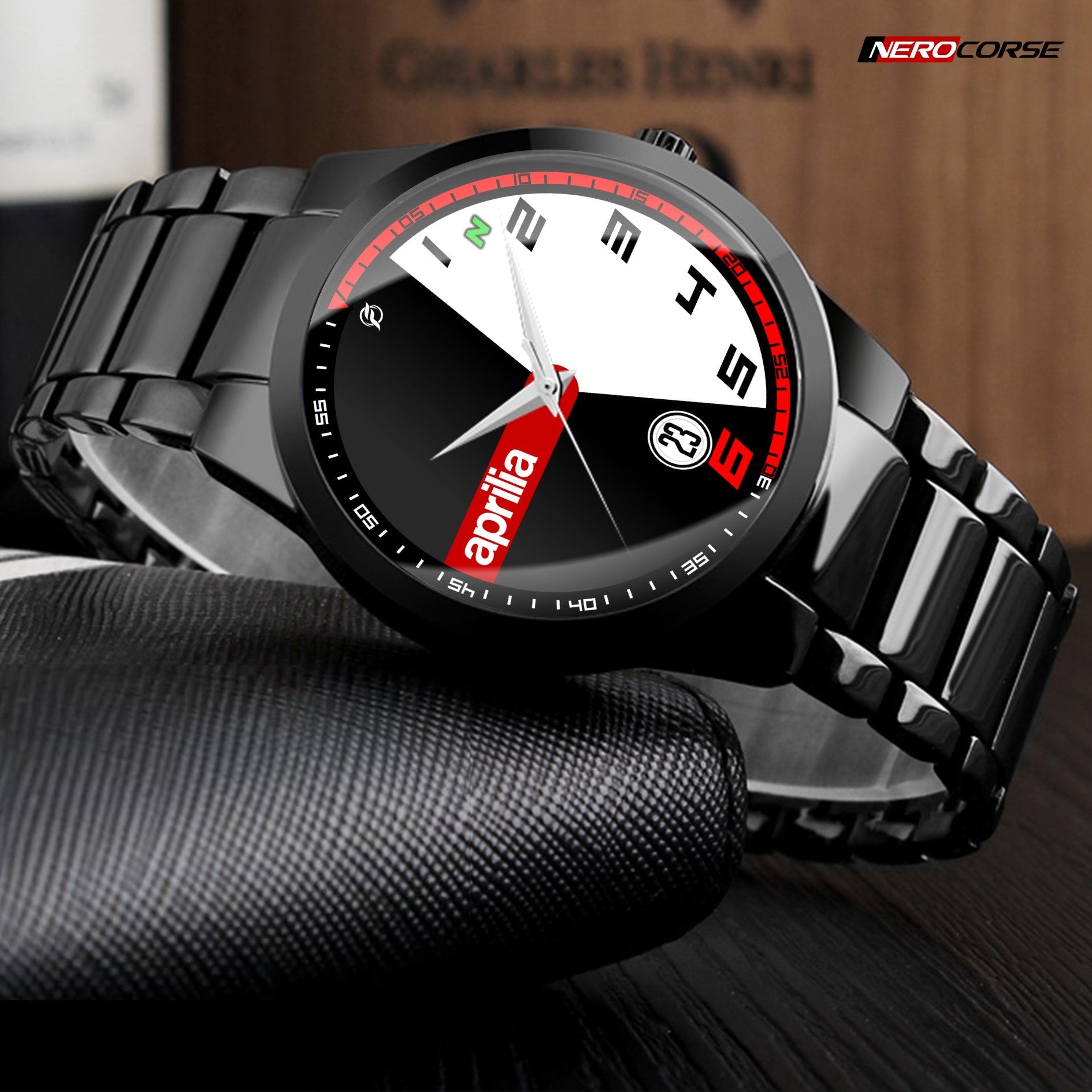 Caratteristiche tecniche dell'orologio modello Nerocorse: confezione in cartone rivestito inciso a laser. Il quadrante è realizzato con una superficie stampata ad alta definizione. Design unisex. La cassa ha un diametro di 40 mm ed è realizzata in acciaio inossidabile con finitura nera lucida. Il cinturino, anch'esso in acciaio inossidabile nero lucido, ha una larghezza di 20 mm e utilizza un sistema di chiusura con gancio rapido. L'orologio è dotato di un movimento al quarzo Epson alimentato a batteria. Il peso complessivo è di 114 grammi e offre una resistenza all'acqua fino a 3 ATM.