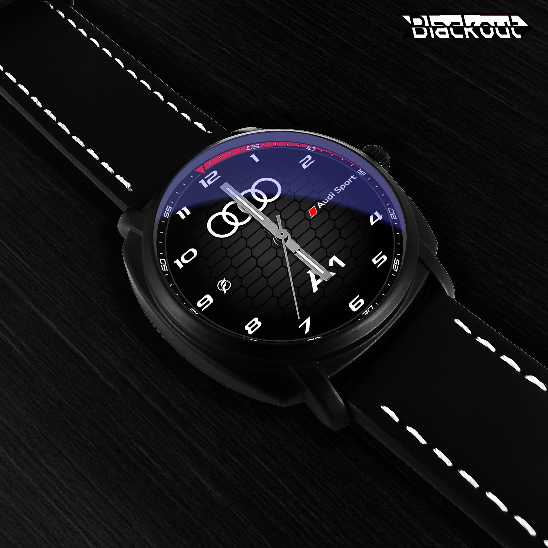 Caratteristiche tecniche dell'orologio Blackout: confezione in cartone rivestito inciso a laser, quadrante con superficie stampata da Canon, design unisex. La cassa ha un diametro di 42 mm ed è realizzata in acciaio inossidabile con finitura nera opaca. Il cinturino ha una larghezza di 22 mm ed è in eco-pelle con cuciture bianche. L'orologio è dotato di una fibbia come tipo di fermaglio e utilizza un movimento al quarzo Epson, alimentato a batteria. Il peso complessivo è di 56 grammi e la resistenza all'acqua è garantita fino a 3 ATM.