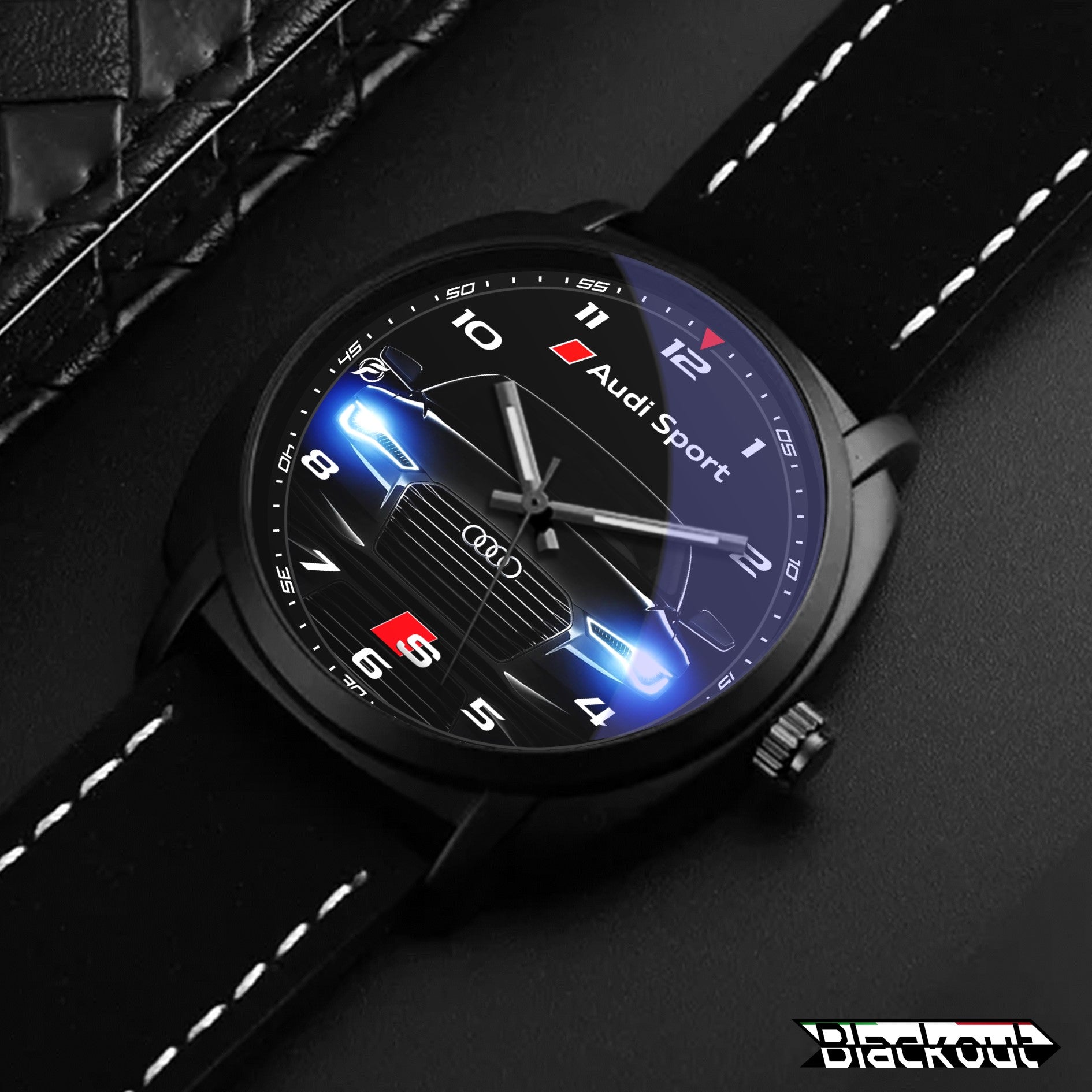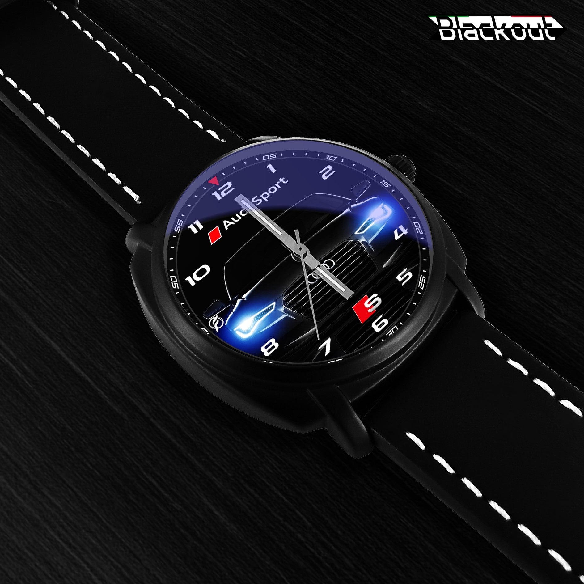 Caratteristiche tecniche dell'orologio Blackout: confezione in cartone rivestito inciso a laser, quadrante con superficie stampata da Canon, design unisex. La cassa ha un diametro di 42 mm ed è realizzata in acciaio inossidabile con finitura nera opaca. Il cinturino ha una larghezza di 22 mm ed è in eco-pelle con cuciture bianche. L'orologio è dotato di una fibbia come tipo di fermaglio e utilizza un movimento al quarzo Epson, alimentato a batteria. Il peso complessivo è di 56 grammi e la resistenza all'acqua è garantita fino a 3 ATM.