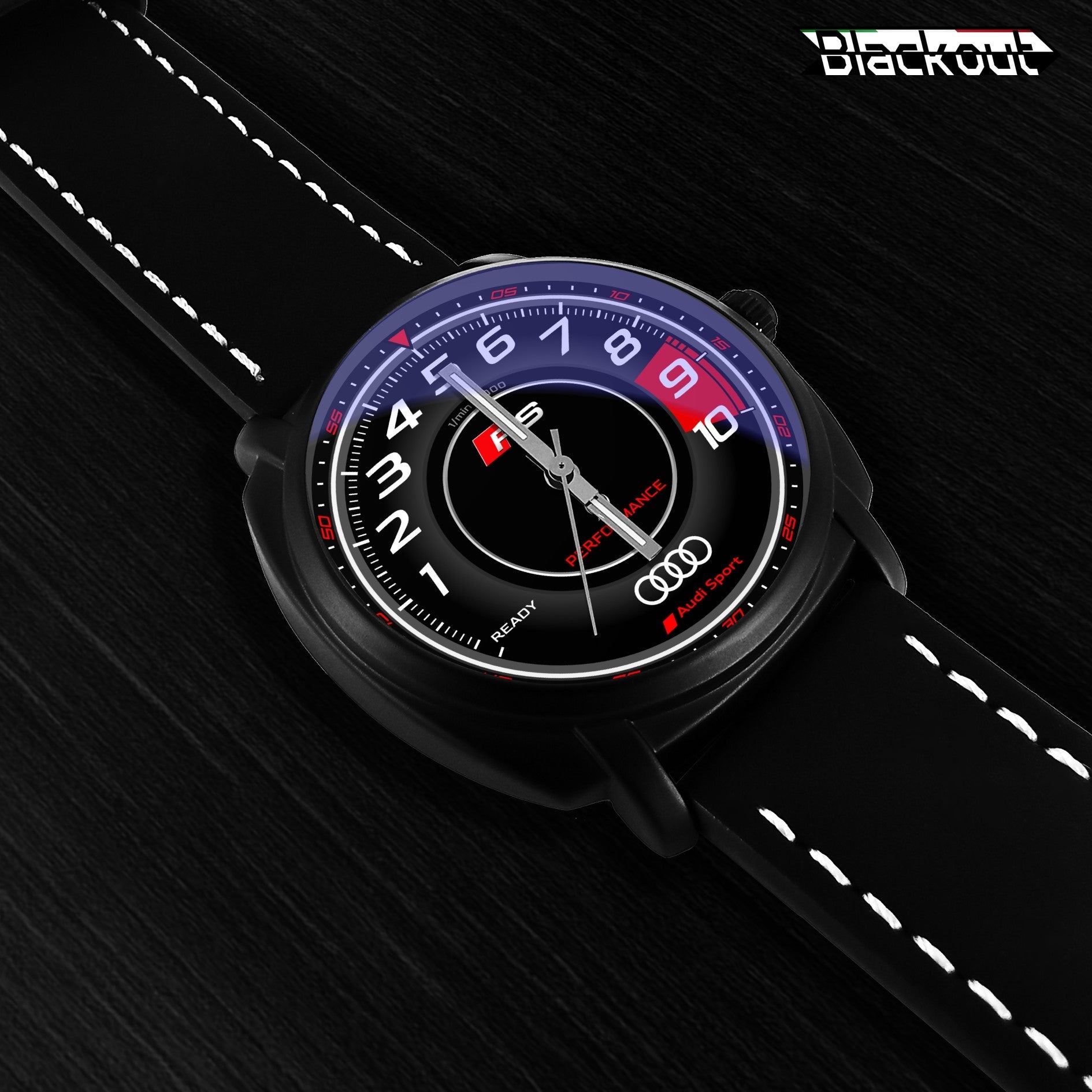 Caratteristiche tecniche dell'orologio Blackout: confezione in cartone rivestito inciso a laser, quadrante con superficie stampata da Canon, design unisex. La cassa ha un diametro di 42 mm ed è realizzata in acciaio inossidabile con finitura nera opaca. Il cinturino ha una larghezza di 22 mm ed è in eco-pelle con cuciture bianche. L'orologio è dotato di una fibbia come tipo di fermaglio e utilizza un movimento al quarzo Epson, alimentato a batteria. Il peso complessivo è di 56 grammi e la resistenza all'acqua è garantita fino a 3 ATM.