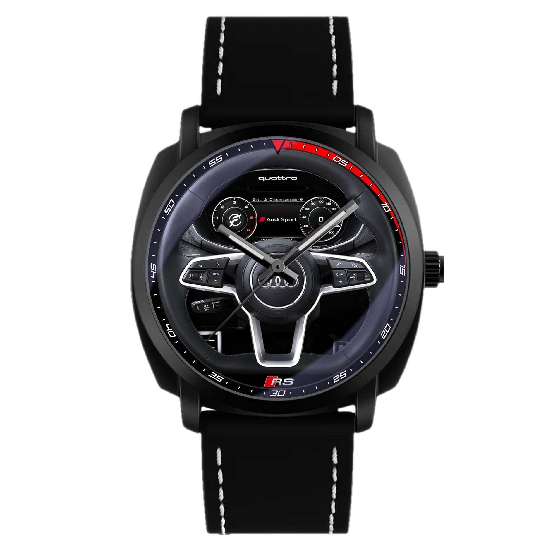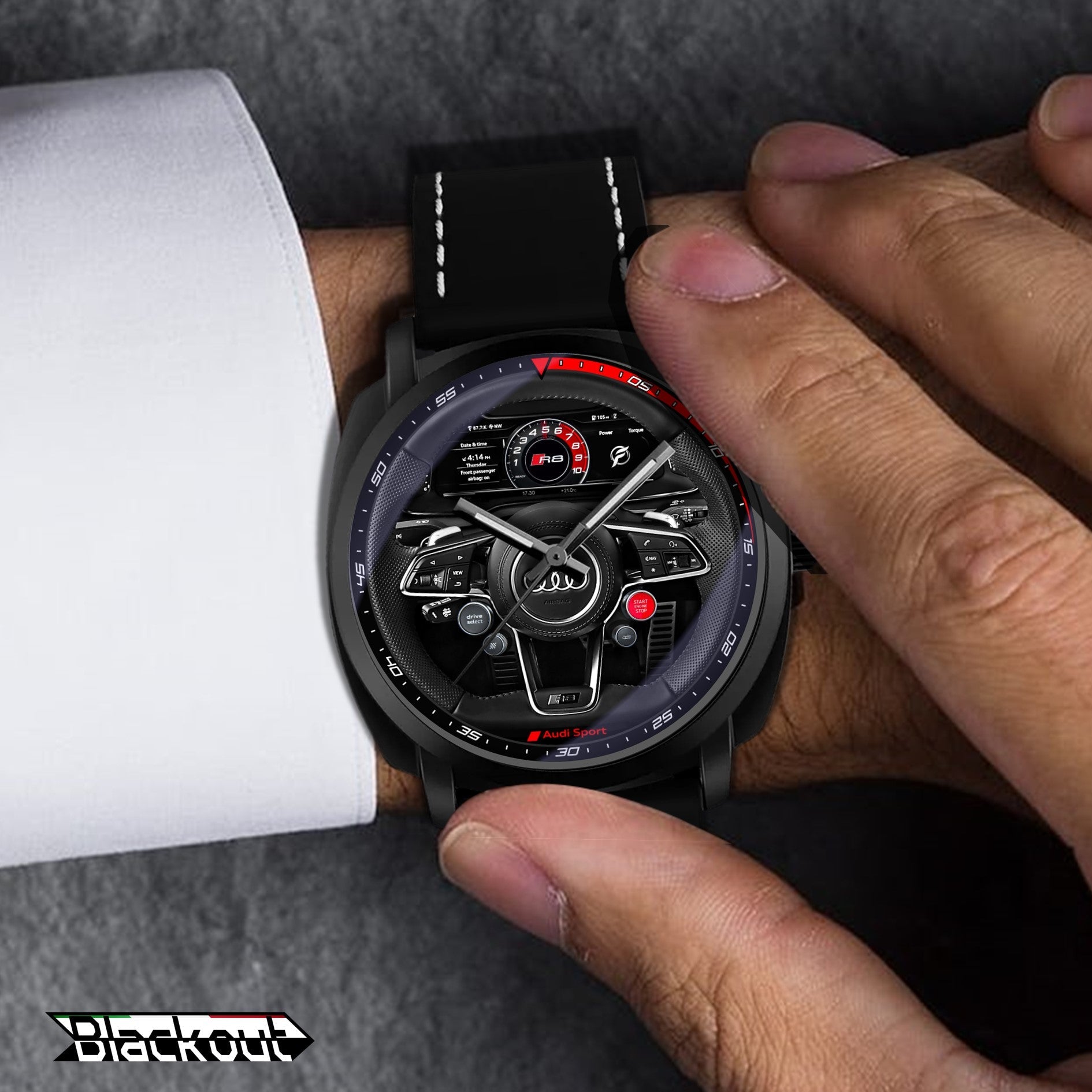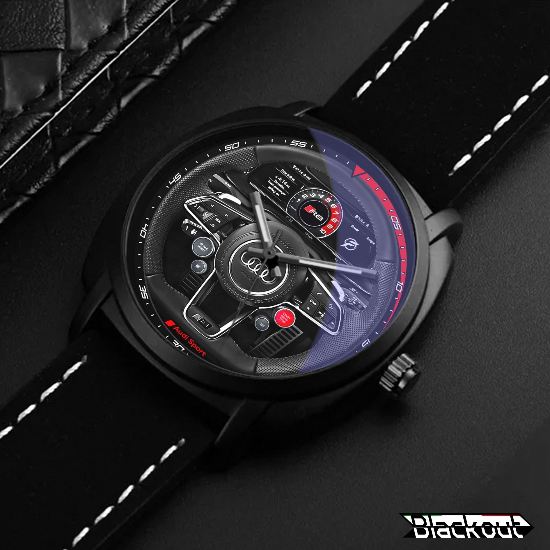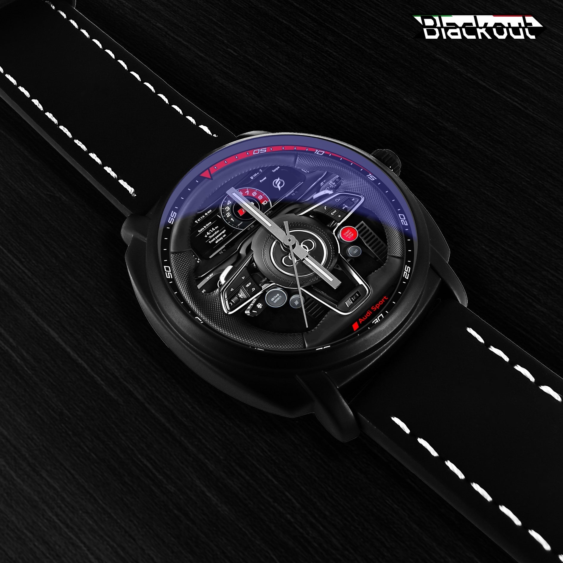 Caratteristiche tecniche dell'orologio Blackout: confezione in cartone rivestito inciso a laser, quadrante con superficie stampata da Canon, design unisex. La cassa ha un diametro di 42 mm ed è realizzata in acciaio inossidabile con finitura nera opaca. Il cinturino ha una larghezza di 22 mm ed è in eco-pelle con cuciture bianche. L'orologio è dotato di una fibbia come tipo di fermaglio e utilizza un movimento al quarzo Epson, alimentato a batteria. Il peso complessivo è di 56 grammi e la resistenza all'acqua è garantita fino a 3 ATM.