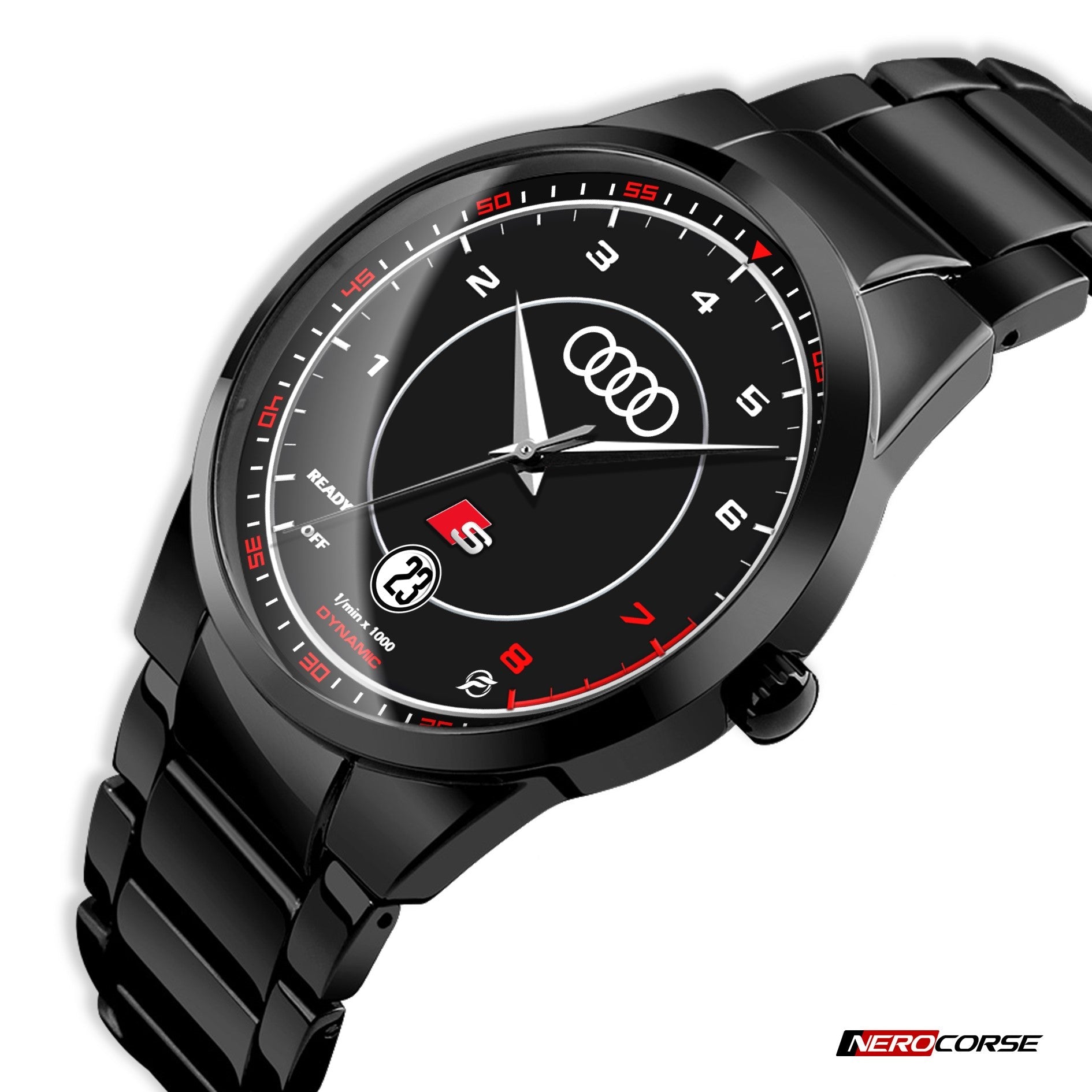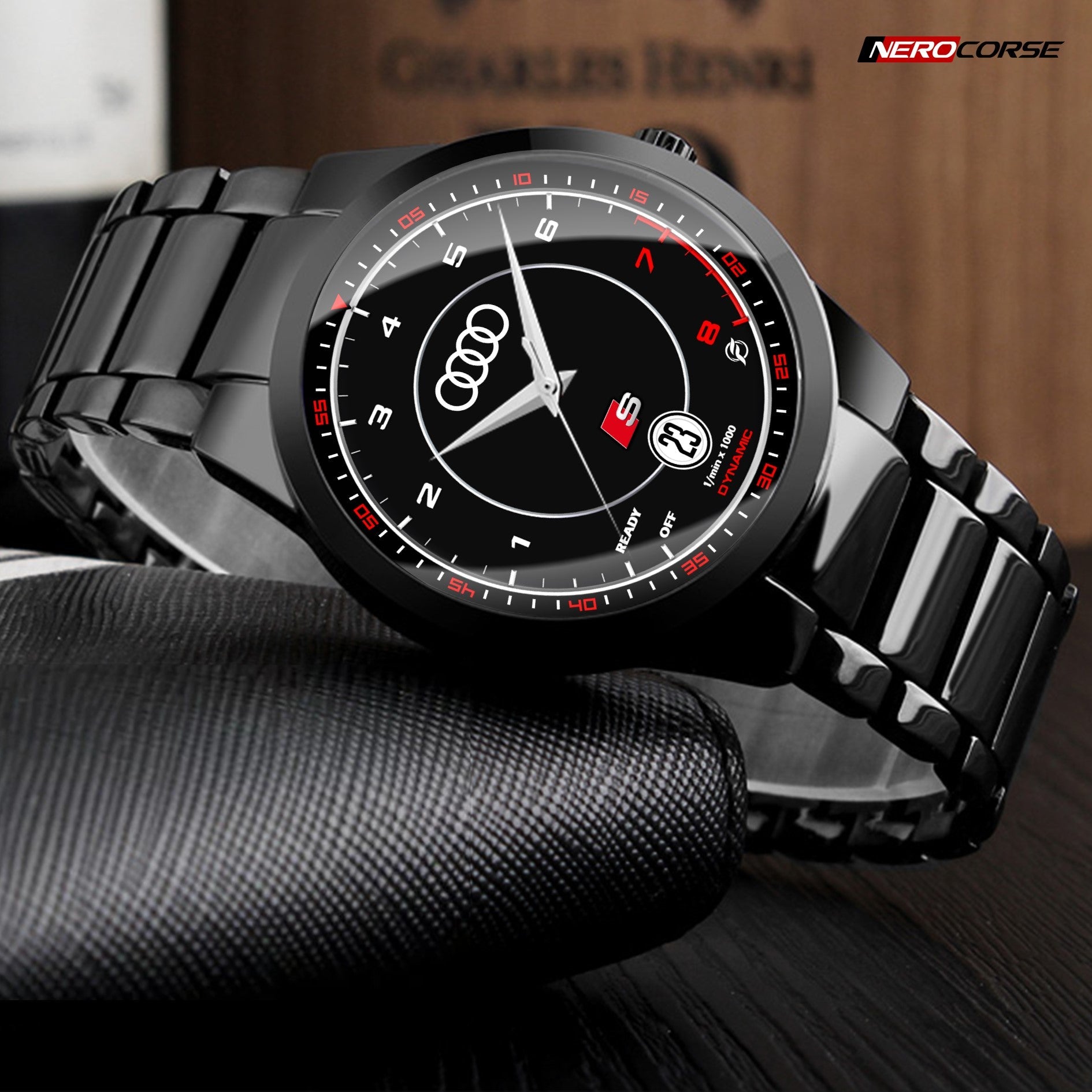 Caratteristiche tecniche dell'orologio modello Nerocorse: confezione in cartone rivestito inciso a laser. Il quadrante è realizzato con una superficie stampata ad alta definizione. Design unisex. La cassa ha un diametro di 40 mm ed è realizzata in acciaio inossidabile con finitura nera lucida. Il cinturino, anch'esso in acciaio inossidabile nero lucido, ha una larghezza di 20 mm e utilizza un sistema di chiusura con gancio rapido. L'orologio è dotato di un movimento al quarzo Epson alimentato a batteria. Il peso complessivo è di 114 grammi e offre una resistenza all'acqua fino a 3 ATM.