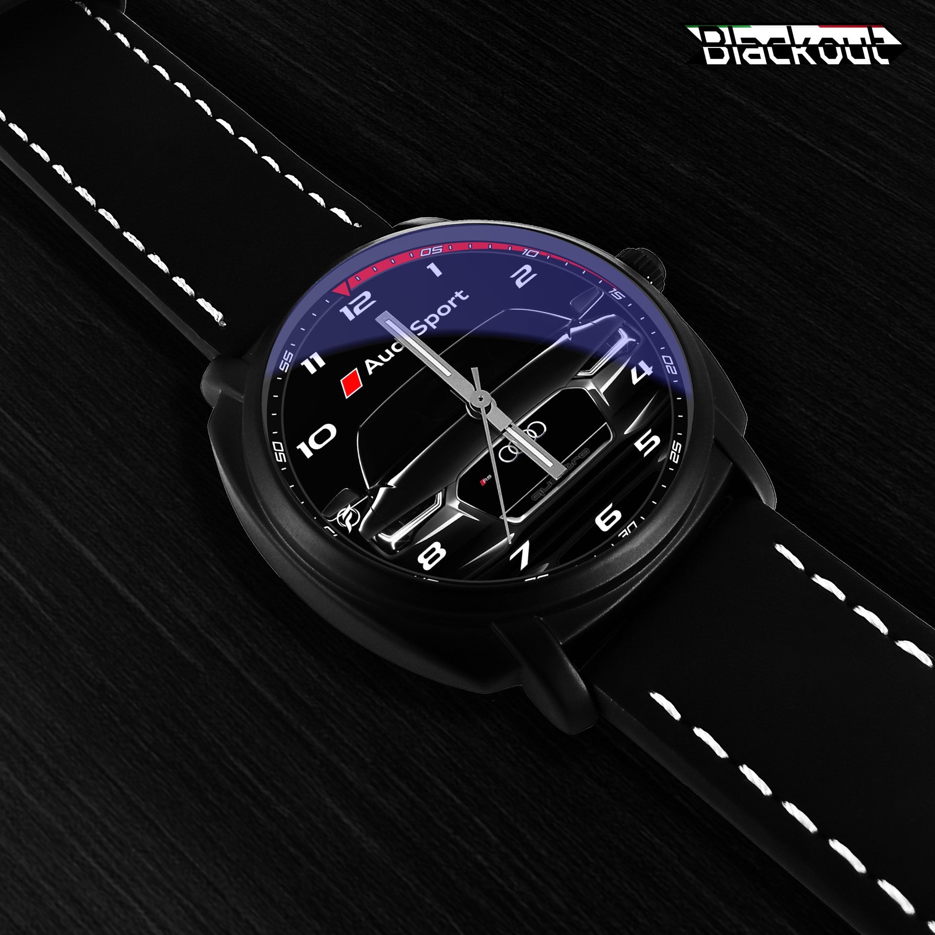 Caratteristiche tecniche dell'orologio Blackout: confezione in cartone rivestito inciso a laser, quadrante con superficie stampata da Canon, design unisex. La cassa ha un diametro di 42 mm ed è realizzata in acciaio inossidabile con finitura nera opaca. Il cinturino ha una larghezza di 22 mm ed è in eco-pelle con cuciture bianche. L'orologio è dotato di una fibbia come tipo di fermaglio e utilizza un movimento al quarzo Epson, alimentato a batteria. Il peso complessivo è di 56 grammi e la resistenza all'acqua è garantita fino a 3 ATM.