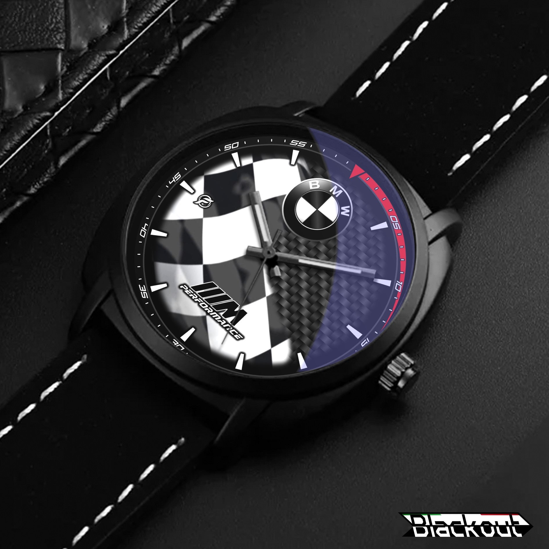 Caratteristiche tecniche dell'orologio Blackout: confezione in cartone rivestito inciso a laser, quadrante con superficie stampata da Canon, design unisex. La cassa ha un diametro di 42 mm ed è realizzata in acciaio inossidabile con finitura nera opaca. Il cinturino ha una larghezza di 22 mm ed è in eco-pelle con cuciture bianche. L'orologio è dotato di una fibbia come tipo di fermaglio e utilizza un movimento al quarzo Epson, alimentato a batteria. Il peso complessivo è di 56 grammi e la resistenza all'acqua è garantita fino a 3 ATM.
