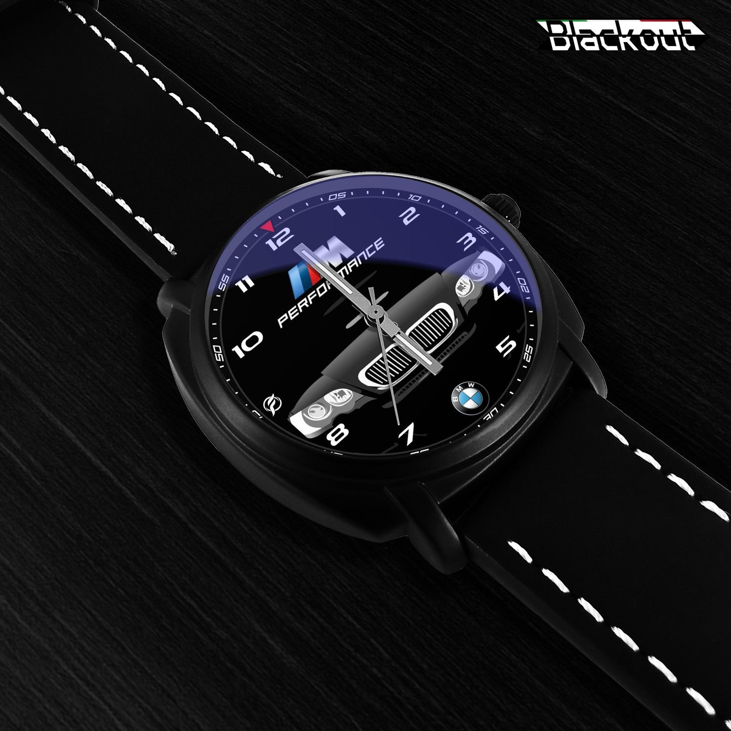 Caratteristiche tecniche dell'orologio Blackout: confezione in cartone rivestito inciso a laser, quadrante con superficie stampata da Canon, design unisex. La cassa ha un diametro di 42 mm ed è realizzata in acciaio inossidabile con finitura nera opaca. Il cinturino ha una larghezza di 22 mm ed è in eco-pelle con cuciture bianche. L'orologio è dotato di una fibbia come tipo di fermaglio e utilizza un movimento al quarzo Epson, alimentato a batteria. Il peso complessivo è di 56 grammi e la resistenza all'acqua è garantita fino a 3 ATM.