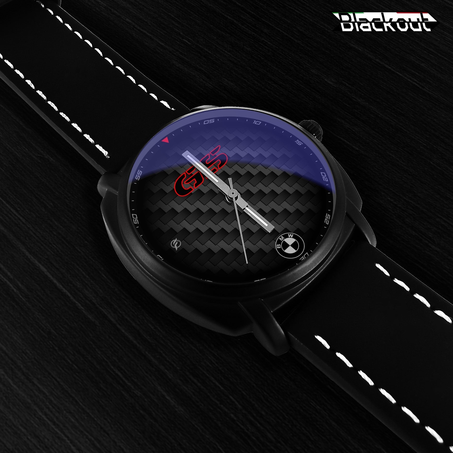 Caratteristiche tecniche dell'orologio Blackout: confezione in cartone rivestito inciso a laser, quadrante con superficie stampata da Canon, design unisex. La cassa ha un diametro di 42 mm ed è realizzata in acciaio inossidabile con finitura nera opaca. Il cinturino ha una larghezza di 22 mm ed è in eco-pelle con cuciture bianche. L'orologio è dotato di una fibbia come tipo di fermaglio e utilizza un movimento al quarzo Epson, alimentato a batteria. Il peso complessivo è di 56 grammi e la resistenza all'acqua è garantita fino a 3 ATM.