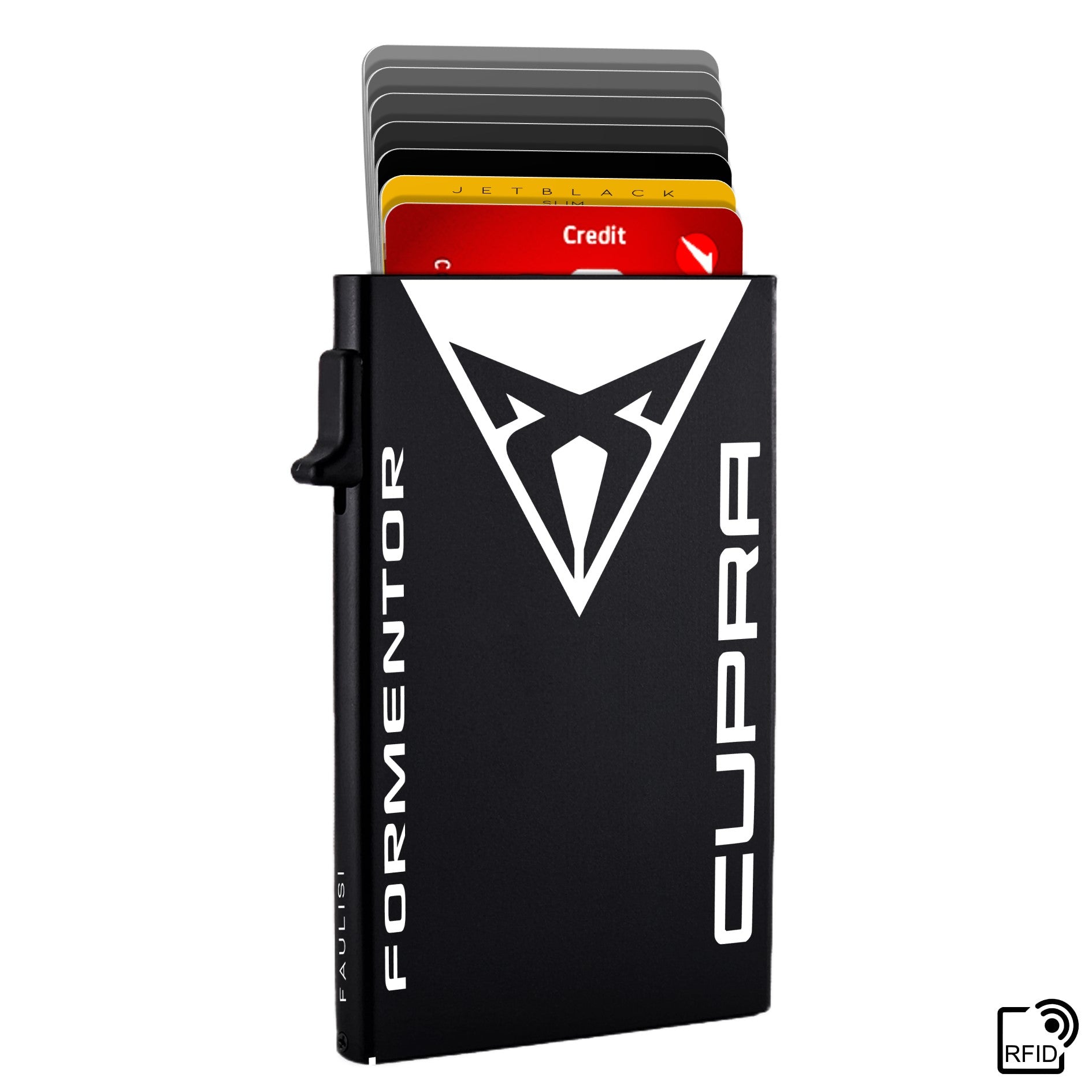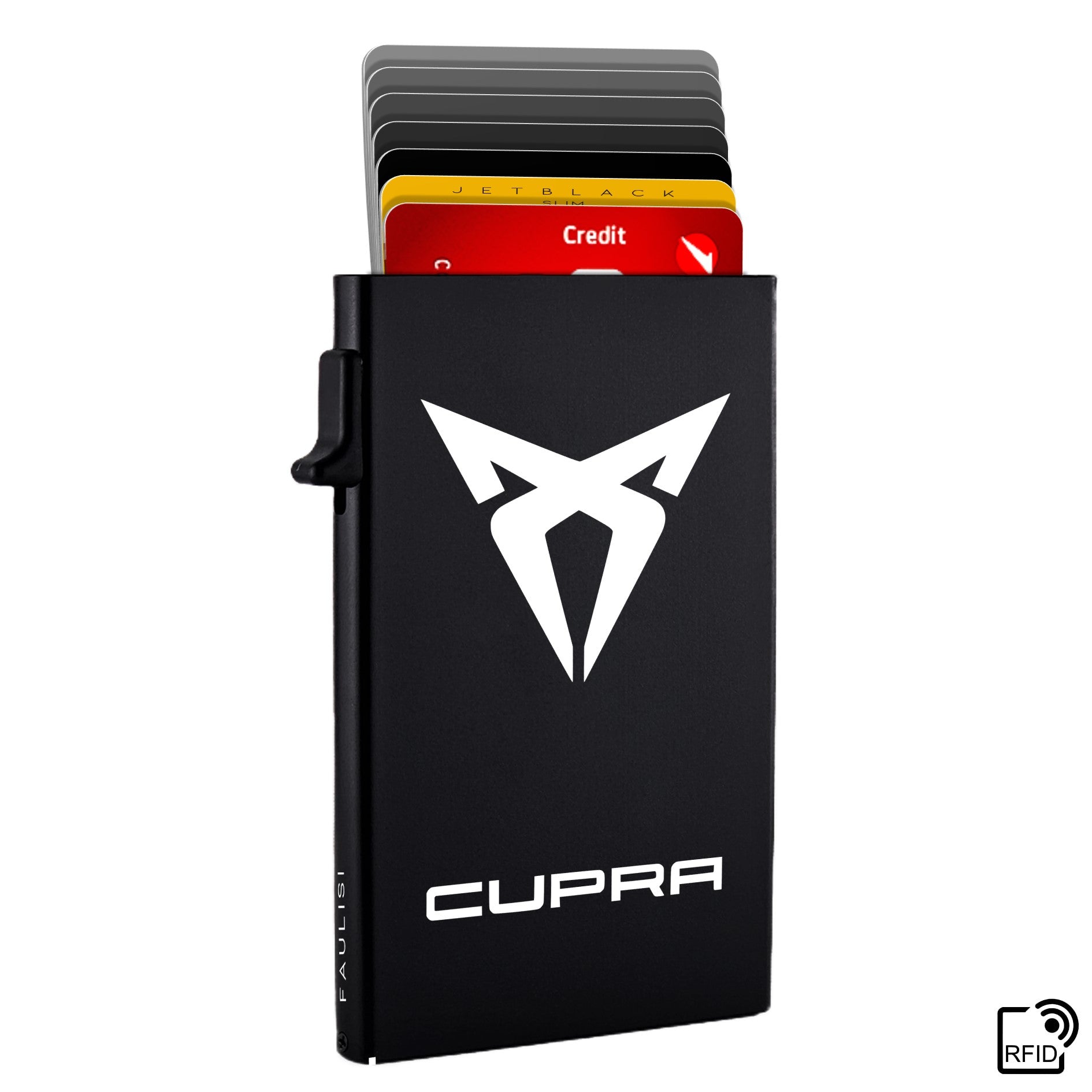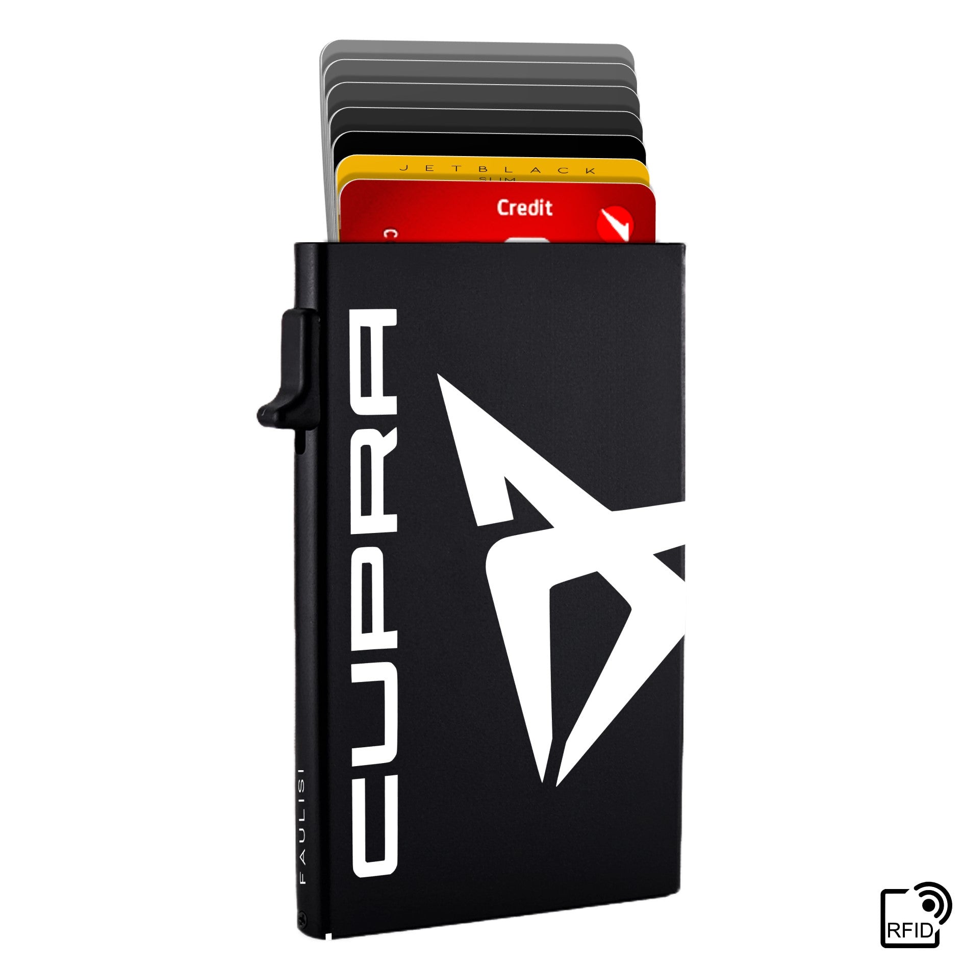 Caratteristiche tecniche del portacarte JetBlack Slim: confezione in cartone rivestito inciso a laser. Realizzato in alluminio anodizzato, con dimensioni di 9,8 cm x 6,4 cm x 1,2 cm. Ha una capienza di 7 carte flat e include 2 tasche aggiuntive. Dotato di protezione RFID. Design in alluminio inciso, colore nero.