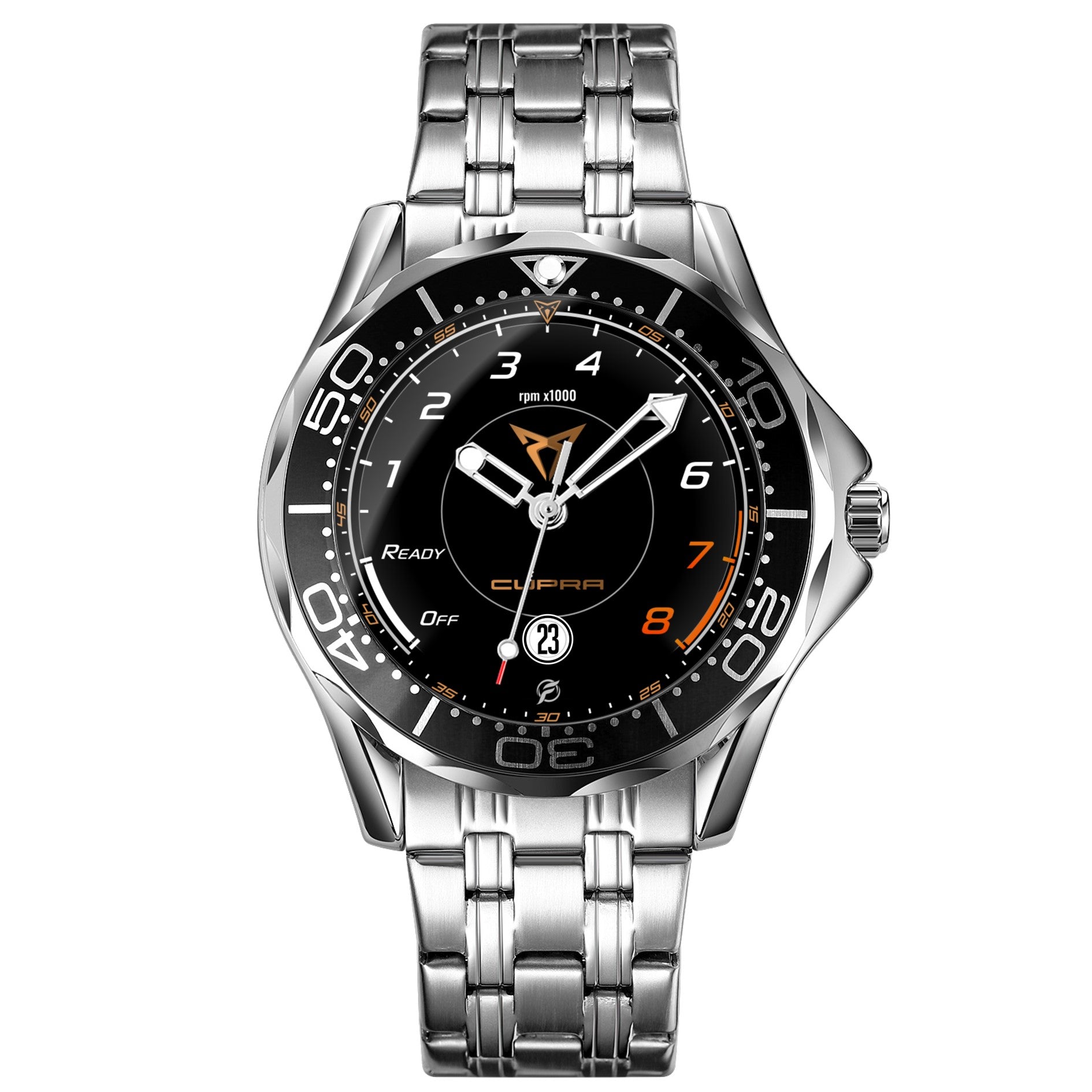 Caratteristiche tecniche dell'orologio Mercury: confezione in cartone rivestito inciso a laser. Il quadrante presenta una superficie stampata con indici sovraesposti. Design unisex. La cassa ha un diametro di 43 mm ed è realizzata in acciaio inossidabile. Il cinturino, anch'esso in acciaio inossidabile, ha una larghezza di 20 mm e utilizza un sistema di chiusura con gancio rapido. L'orologio è alimentato da un movimento al quarzo Epson a batteria. Il peso totale è di 136 grammi e offre una resistenza all'acqua fino a 3 ATM.