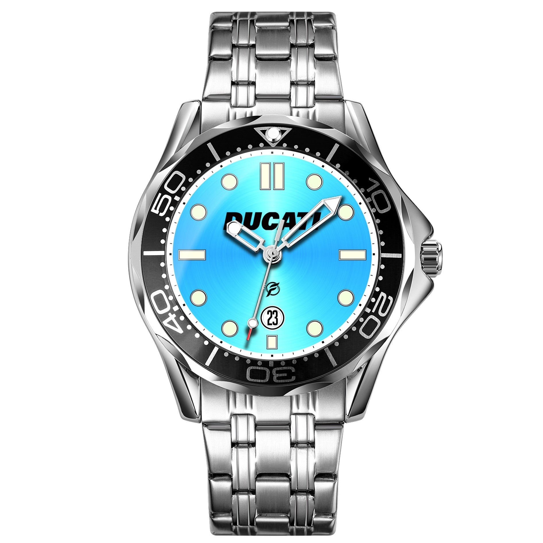 Caratteristiche tecniche dell'orologio Mercury: confezione in cartone rivestito inciso a laser. Il quadrante presenta una superficie stampata con indici sovraesposti. Design unisex. La cassa ha un diametro di 43 mm ed è realizzata in acciaio inossidabile. Il cinturino, anch'esso in acciaio inossidabile, ha una larghezza di 20 mm e utilizza un sistema di chiusura con gancio rapido. L'orologio è alimentato da un movimento al quarzo Epson a batteria. Il peso totale è di 136 grammi e offre una resistenza all'acqua fino a 3 ATM.