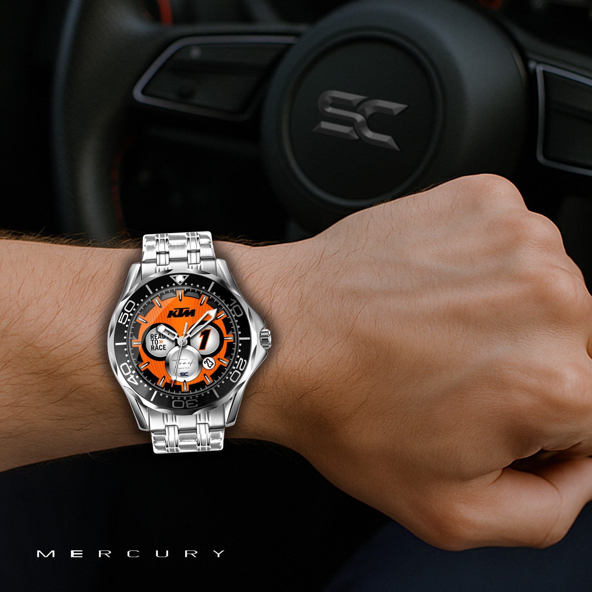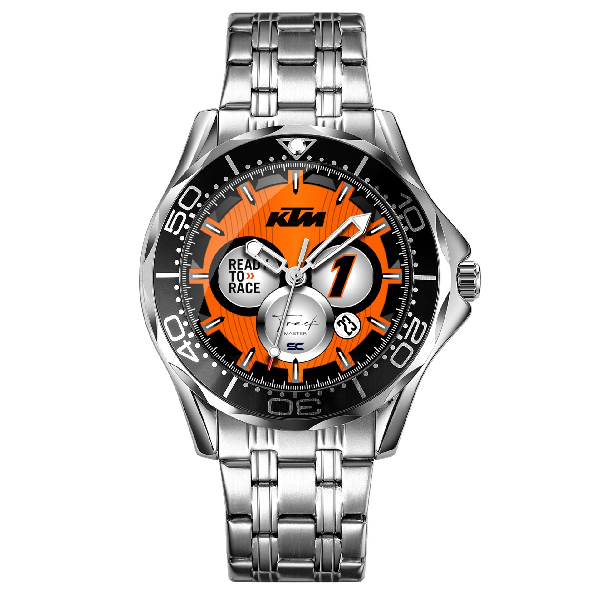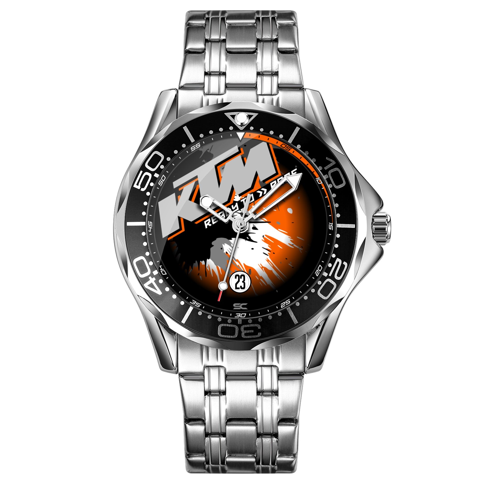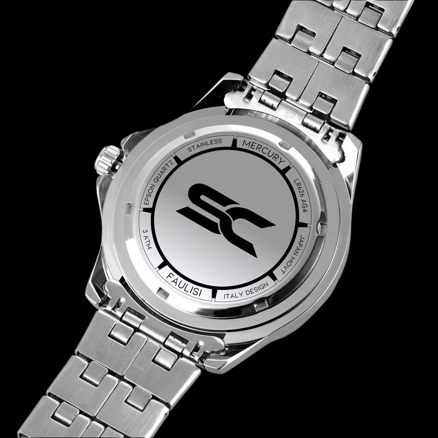 L'orologio monta un movimento al quarzo Epson giapponese con datario.