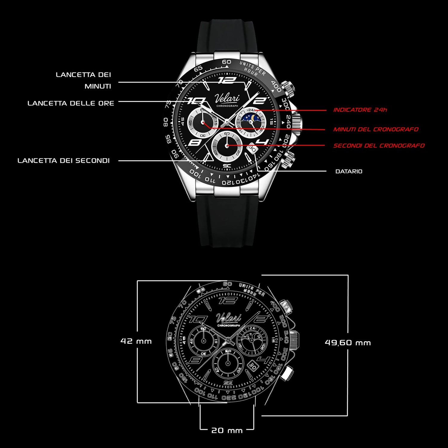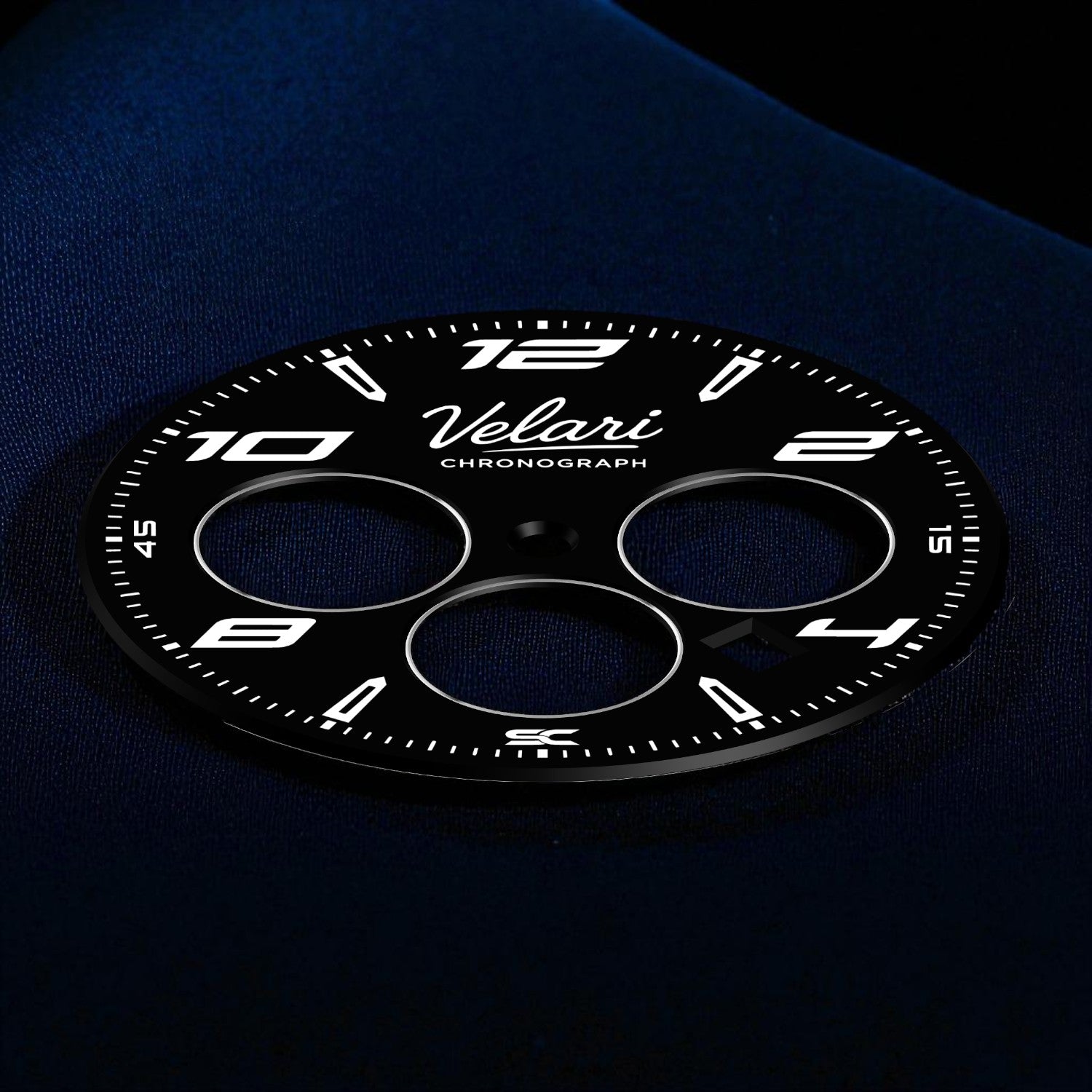 Il quadrante a doppio strato, è stato realizzato in Alluminio Anodizzato, questo materiale permette di far brillare le incisioni creando un effetto resistente e luminoso.