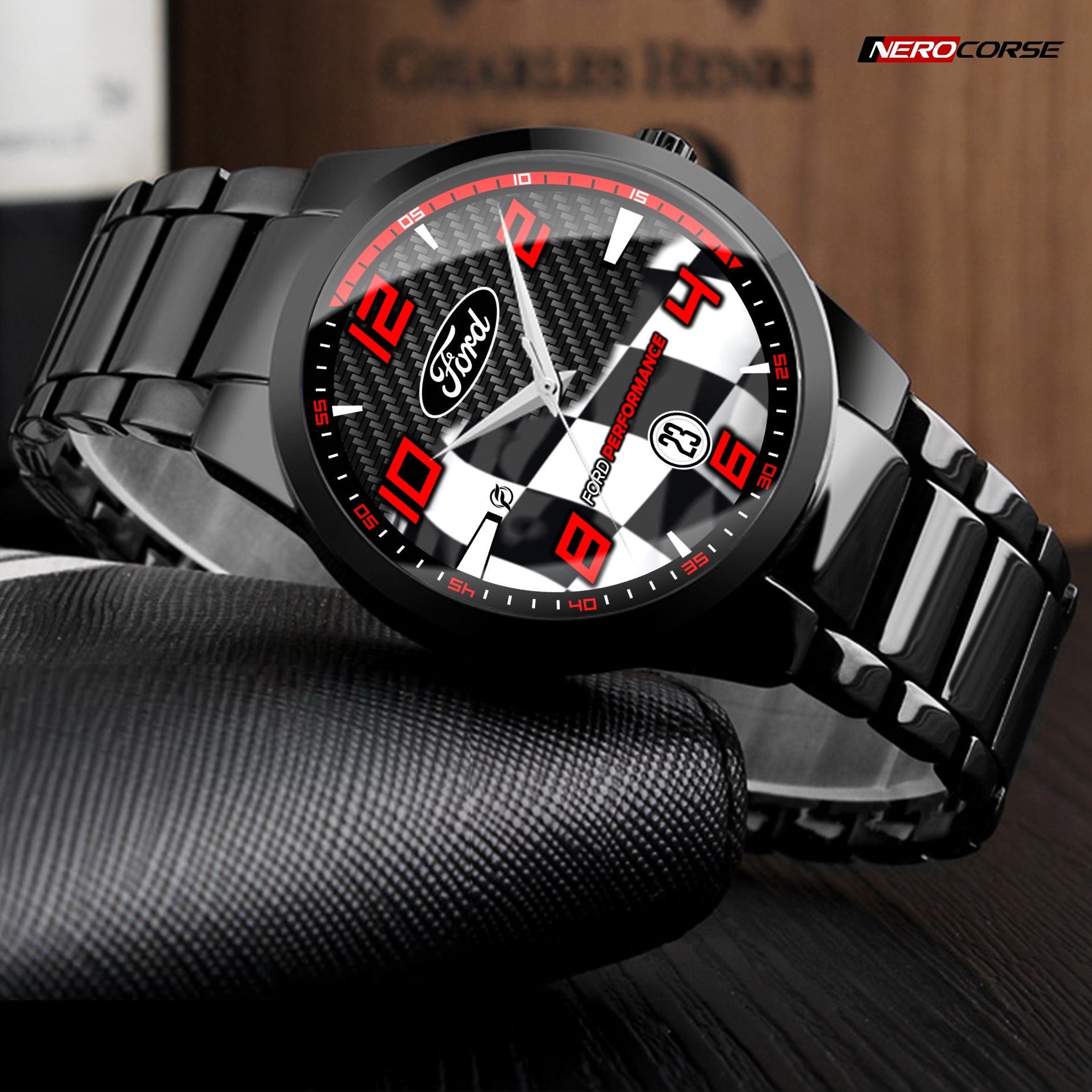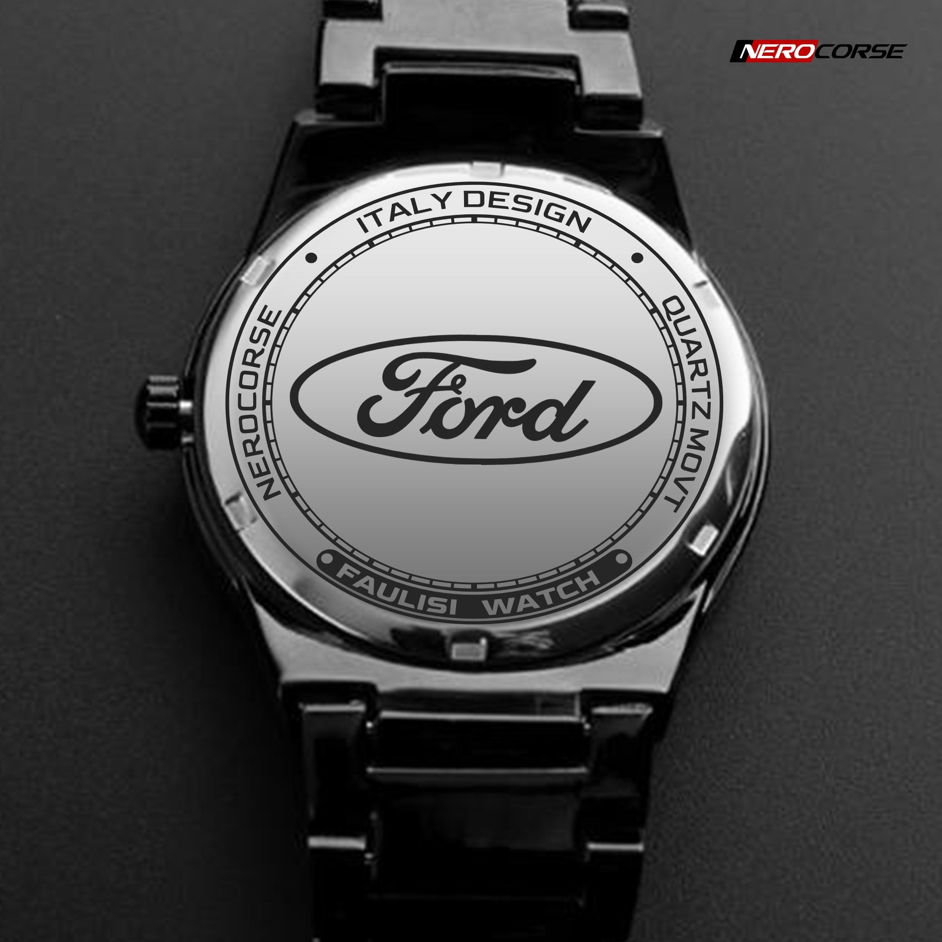Caratteristiche tecniche dell'orologio modello Nerocorse: confezione in cartone rivestito inciso a laser. Il quadrante è realizzato con una superficie stampata ad alta definizione. Design unisex. La cassa ha un diametro di 40 mm ed è realizzata in acciaio inossidabile con finitura nera lucida. Il cinturino, anch'esso in acciaio inossidabile nero lucido, ha una larghezza di 20 mm e utilizza un sistema di chiusura con gancio rapido. L'orologio è dotato di un movimento al quarzo Epson alimentato a batteria. Il peso complessivo è di 114 grammi e offre una resistenza all'acqua fino a 3 ATM.