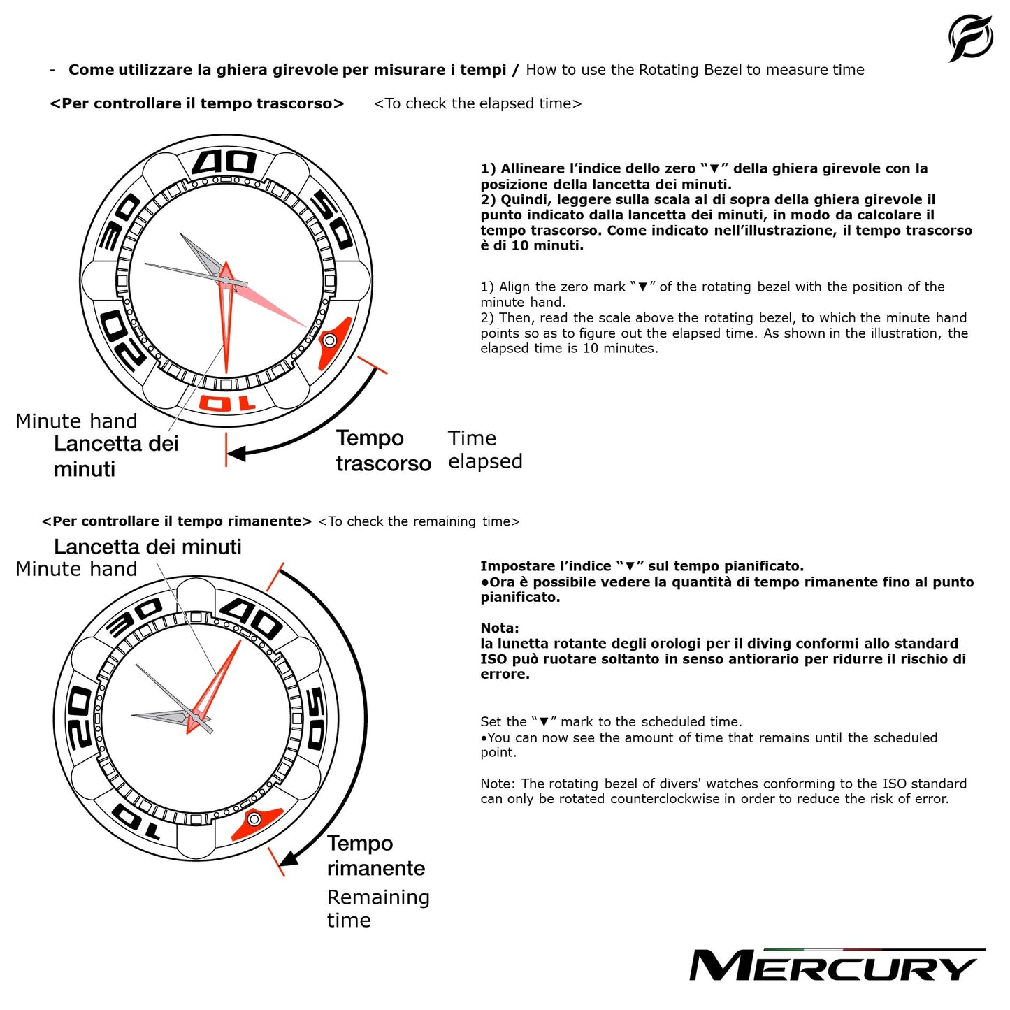 Caratteristiche tecniche dell'orologio Mercury: confezione in cartone rivestito inciso a laser. Il quadrante presenta una superficie stampata con indici sovraesposti. Design unisex. La cassa ha un diametro di 43 mm ed è realizzata in acciaio inossidabile. Il cinturino, anch'esso in acciaio inossidabile, ha una larghezza di 20 mm e utilizza un sistema di chiusura con gancio rapido. L'orologio è alimentato da un movimento al quarzo Epson a batteria. Il peso totale è di 136 grammi e offre una resistenza all'acqua fino a 3 ATM.