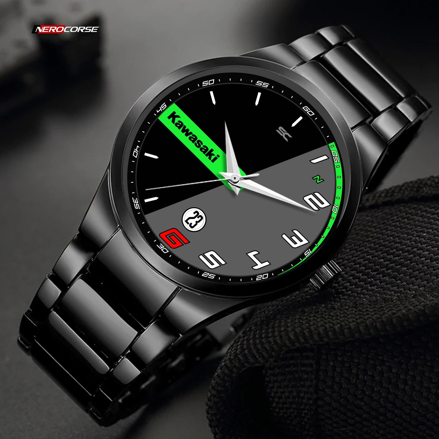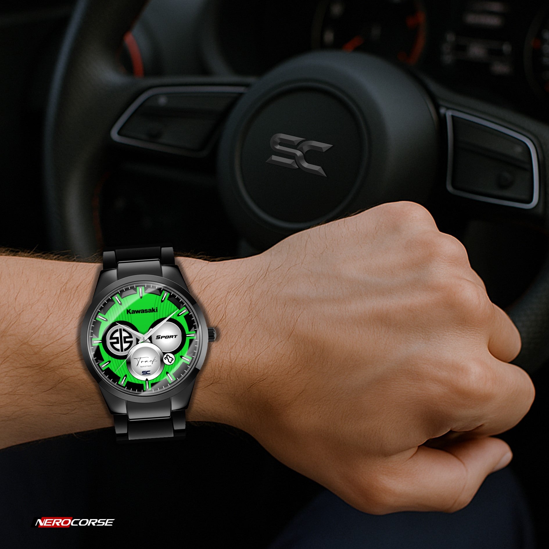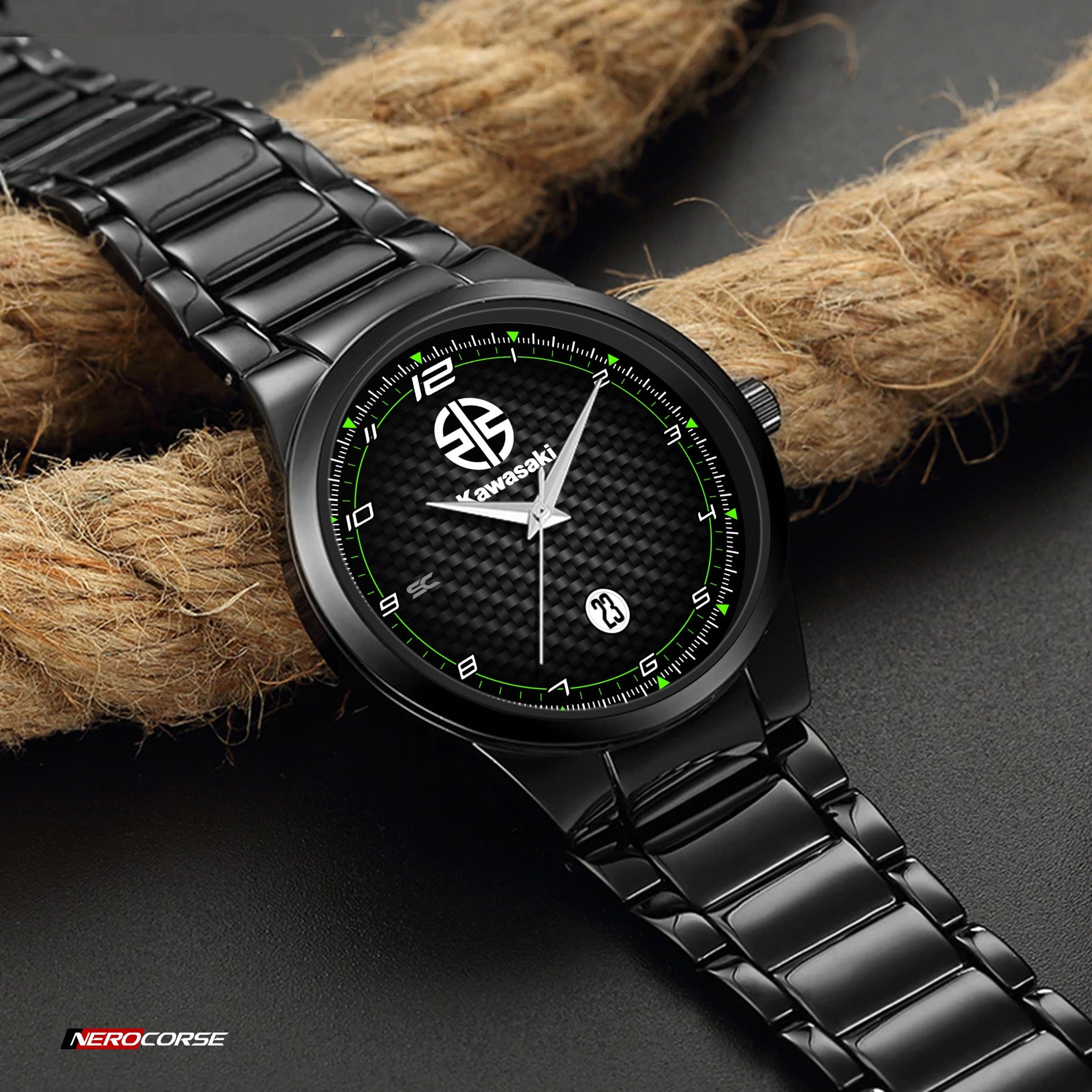 L'orologio monta un movimento al quarzo Epson giapponese con datario.