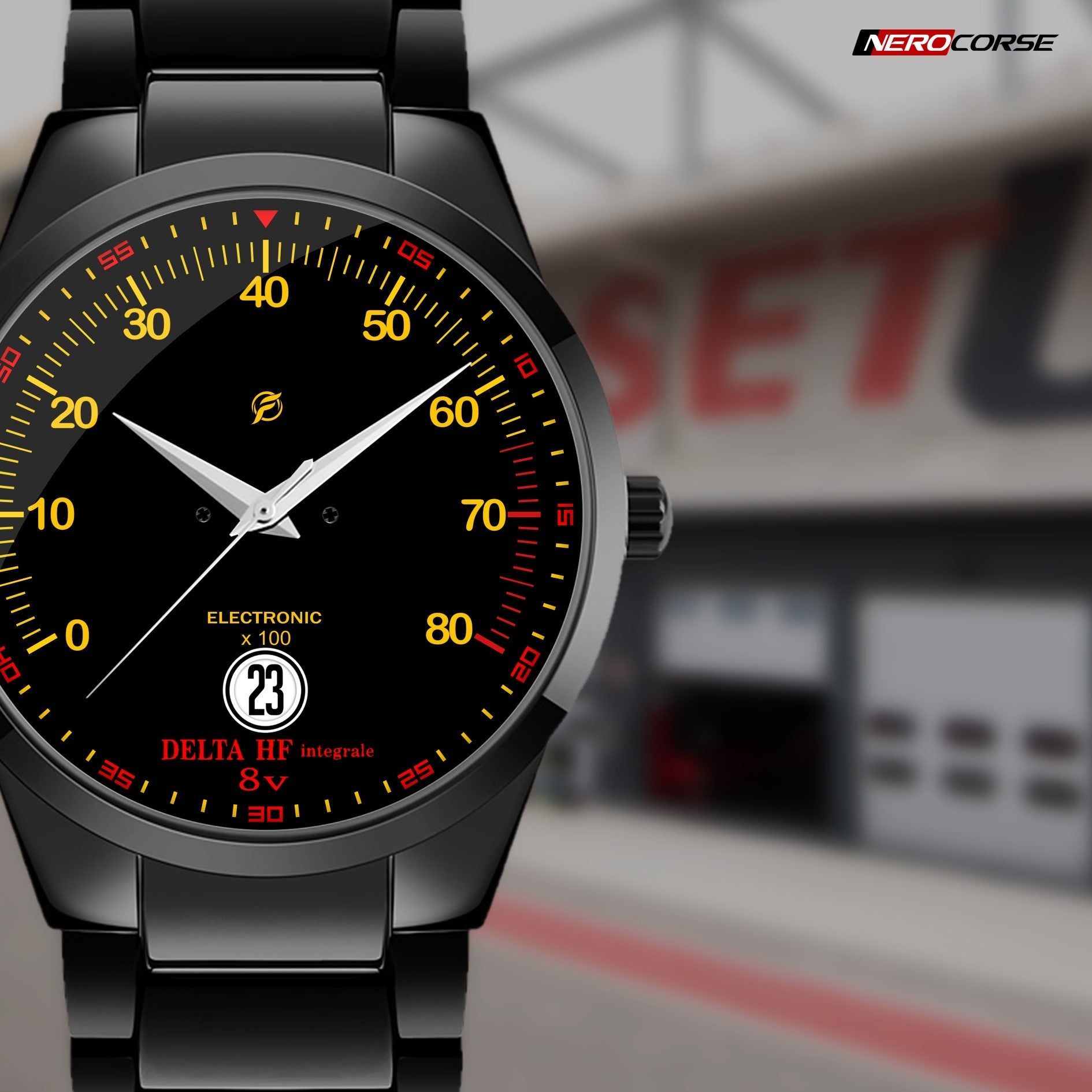 Caratteristiche tecniche dell'orologio modello Nerocorse: confezione in cartone rivestito inciso a laser. Il quadrante è realizzato con una superficie stampata ad alta definizione. Design unisex. La cassa ha un diametro di 40 mm ed è realizzata in acciaio inossidabile con finitura nera lucida. Il cinturino, anch'esso in acciaio inossidabile nero lucido, ha una larghezza di 20 mm e utilizza un sistema di chiusura con gancio rapido. L'orologio è dotato di un movimento al quarzo Epson alimentato a batteria. Il peso complessivo è di 114 grammi e offre una resistenza all'acqua fino a 3 ATM.