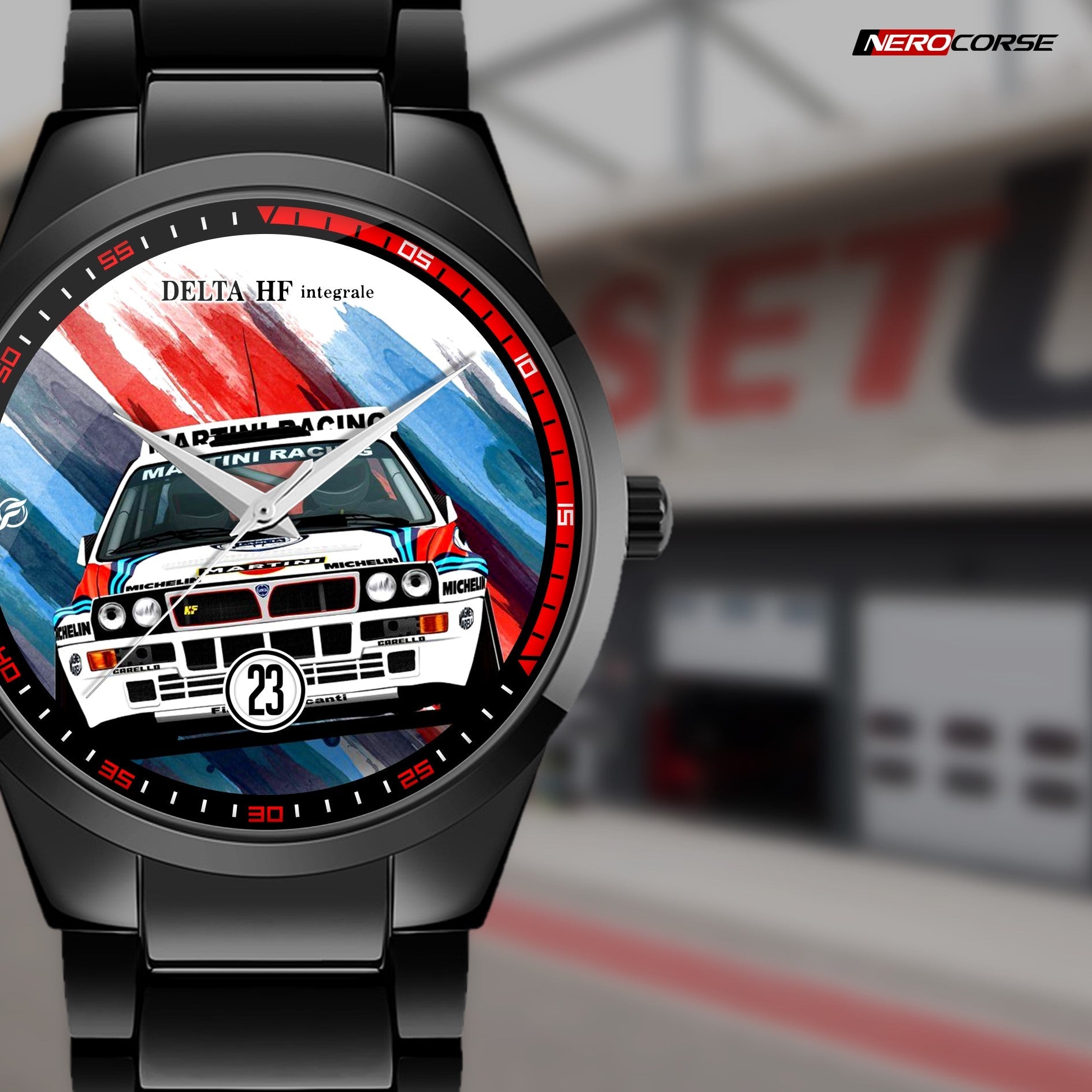 Caratteristiche tecniche dell'orologio modello Nerocorse: confezione in cartone rivestito inciso a laser. Il quadrante è realizzato con una superficie stampata ad alta definizione. Design unisex. La cassa ha un diametro di 40 mm ed è realizzata in acciaio inossidabile con finitura nera lucida. Il cinturino, anch'esso in acciaio inossidabile nero lucido, ha una larghezza di 20 mm e utilizza un sistema di chiusura con gancio rapido. L'orologio è dotato di un movimento al quarzo Epson alimentato a batteria. Il peso complessivo è di 114 grammi e offre una resistenza all'acqua fino a 3 ATM.