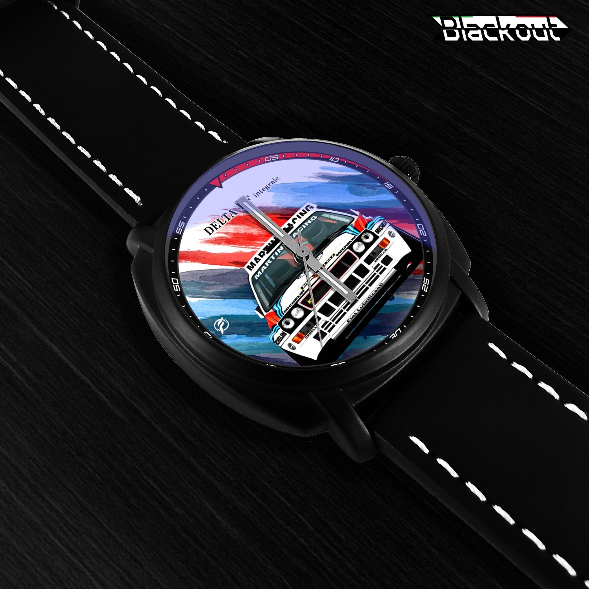Caratteristiche tecniche dell'orologio Blackout: confezione in cartone rivestito inciso a laser, quadrante con superficie stampata da Canon, design unisex. La cassa ha un diametro di 42 mm ed è realizzata in acciaio inossidabile con finitura nera opaca. Il cinturino ha una larghezza di 22 mm ed è in eco-pelle con cuciture bianche. L'orologio è dotato di una fibbia come tipo di fermaglio e utilizza un movimento al quarzo Epson, alimentato a batteria. Il peso complessivo è di 56 grammi e la resistenza all'acqua è garantita fino a 3 ATM.
