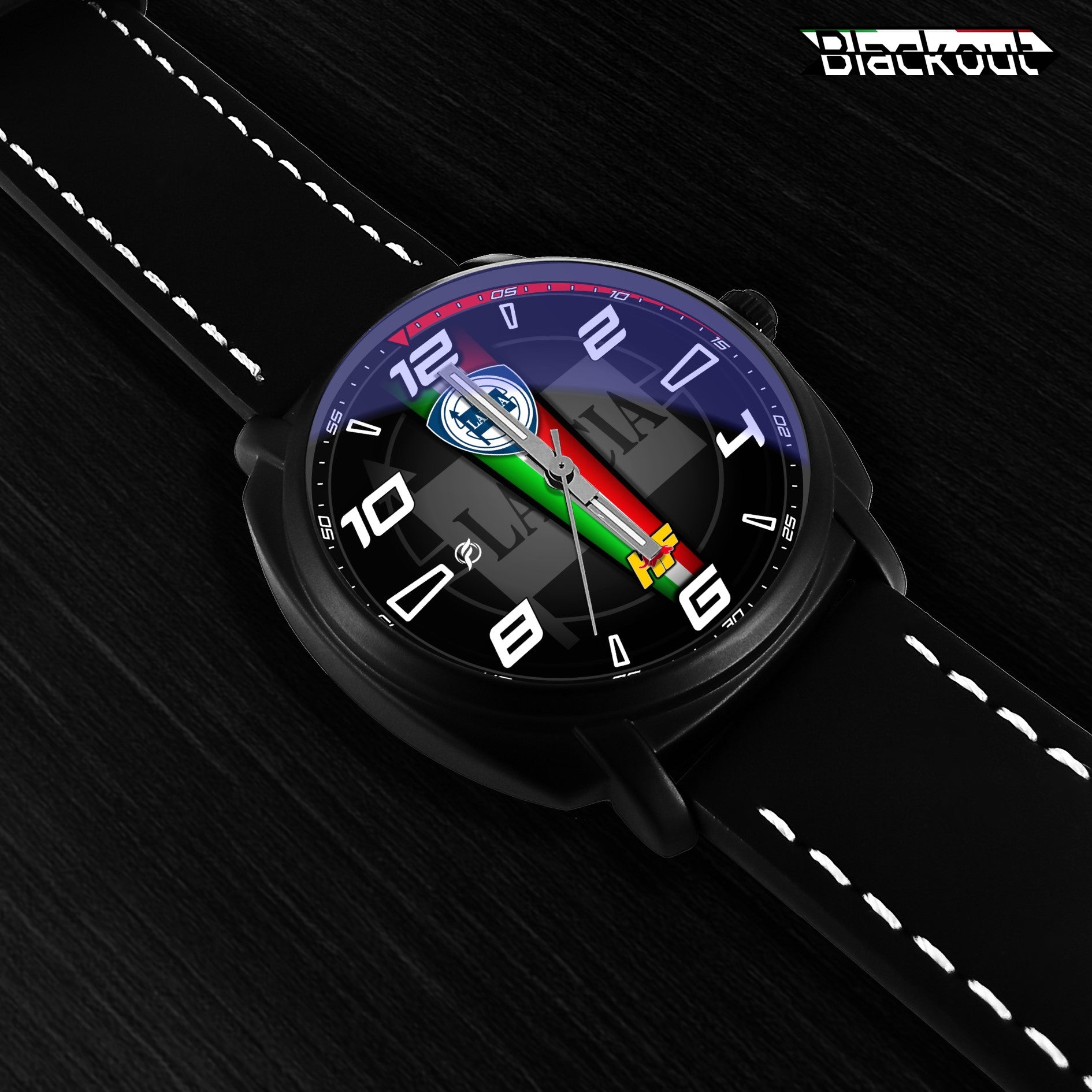 Caratteristiche tecniche dell'orologio Blackout: confezione in cartone rivestito inciso a laser, quadrante con superficie stampata da Canon, design unisex. La cassa ha un diametro di 42 mm ed è realizzata in acciaio inossidabile con finitura nera opaca. Il cinturino ha una larghezza di 22 mm ed è in eco-pelle con cuciture bianche. L'orologio è dotato di una fibbia come tipo di fermaglio e utilizza un movimento al quarzo Epson, alimentato a batteria. Il peso complessivo è di 56 grammi e la resistenza all'acqua è garantita fino a 3 ATM.