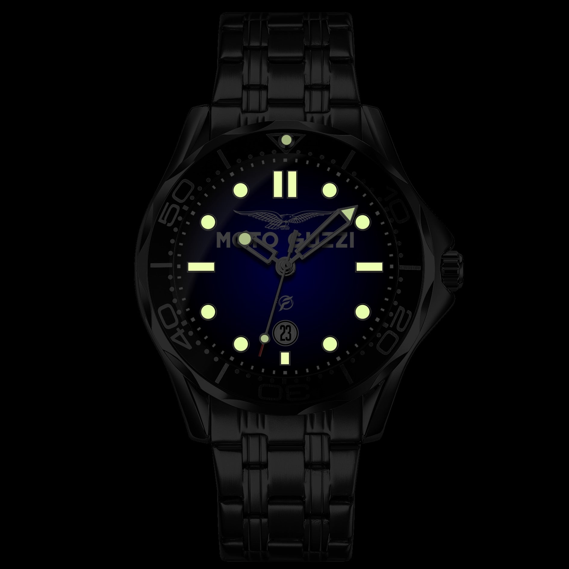 Caratteristiche tecniche dell'orologio Mercury: confezione in cartone rivestito inciso a laser. Il quadrante presenta una superficie stampata con indici sovraesposti. Design unisex. La cassa ha un diametro di 43 mm ed è realizzata in acciaio inossidabile. Il cinturino, anch'esso in acciaio inossidabile, ha una larghezza di 20 mm e utilizza un sistema di chiusura con gancio rapido. L'orologio è alimentato da un movimento al quarzo Epson a batteria. Il peso totale è di 136 grammi e offre una resistenza all'acqua fino a 3 ATM.