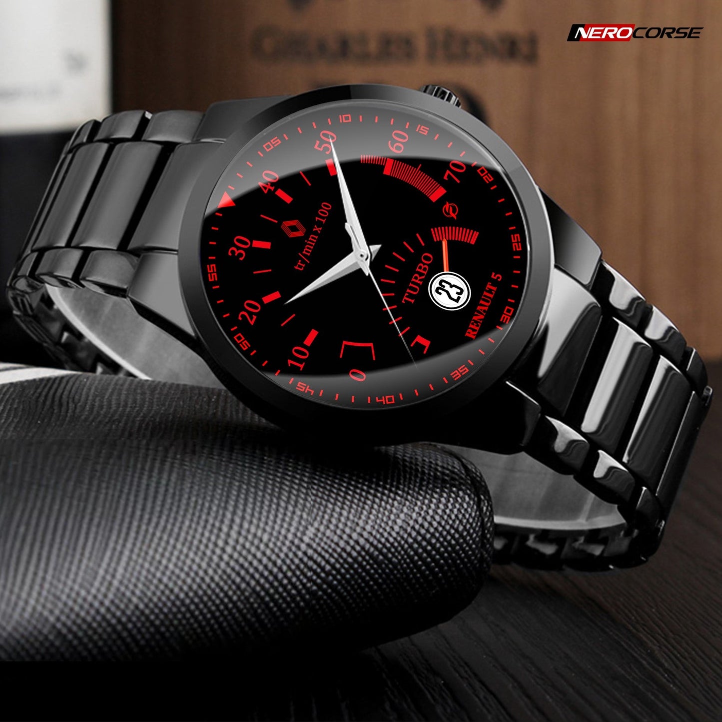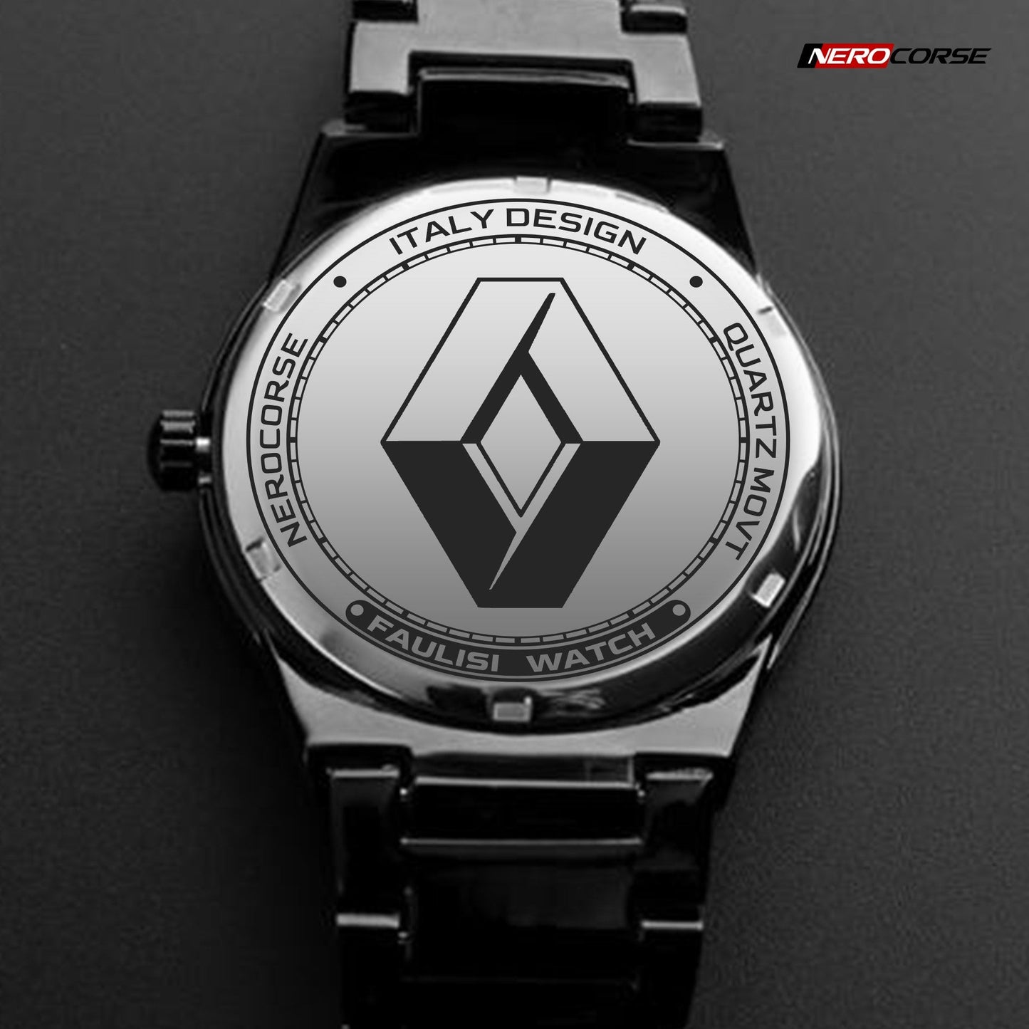 Caratteristiche tecniche dell'orologio modello Nerocorse: confezione in cartone rivestito inciso a laser. Il quadrante è realizzato con una superficie stampata ad alta definizione. Design unisex. La cassa ha un diametro di 40 mm ed è realizzata in acciaio inossidabile con finitura nera lucida. Il cinturino, anch'esso in acciaio inossidabile nero lucido, ha una larghezza di 20 mm e utilizza un sistema di chiusura con gancio rapido. L'orologio è dotato di un movimento al quarzo Epson alimentato a batteria. Il peso complessivo è di 114 grammi e offre una resistenza all'acqua fino a 3 ATM.