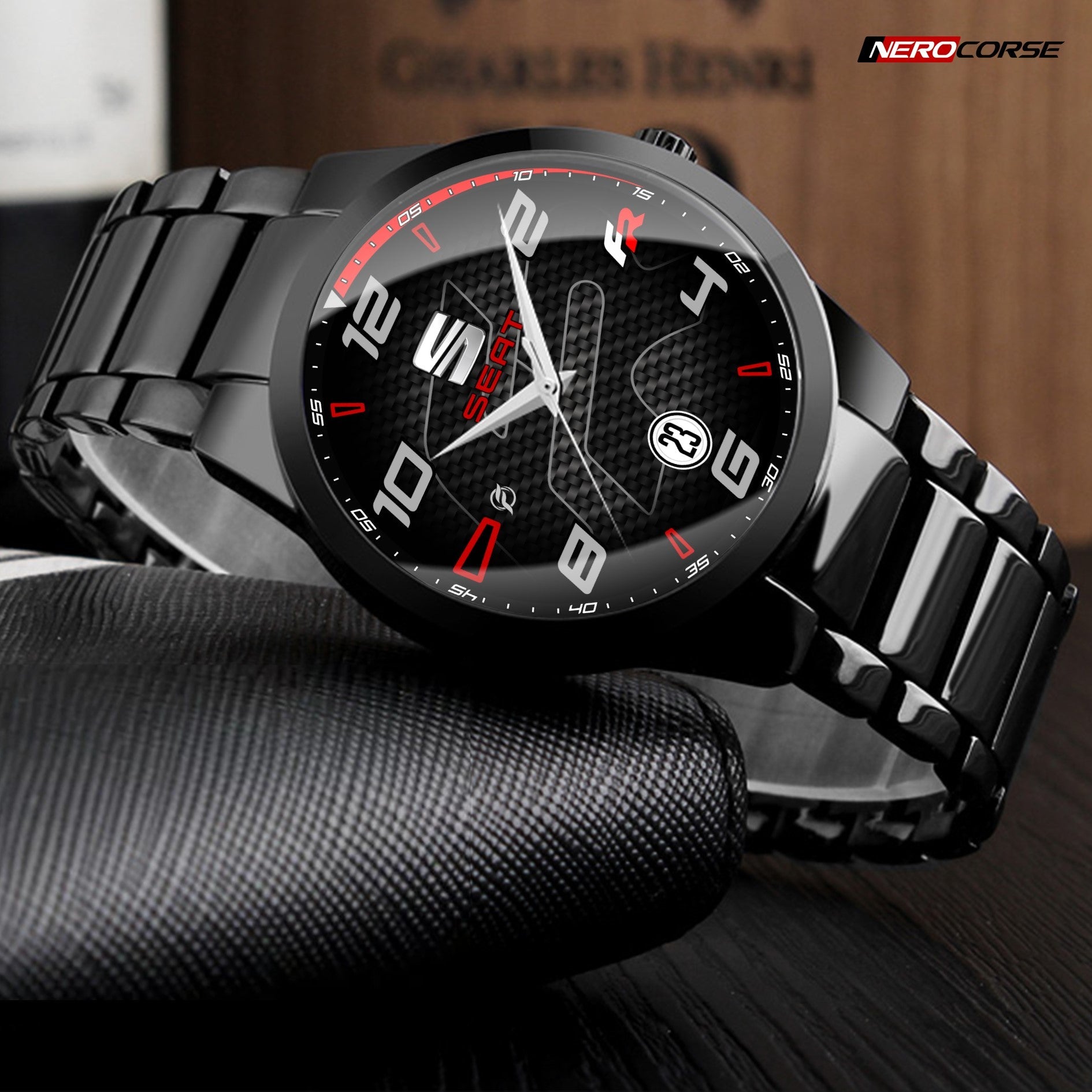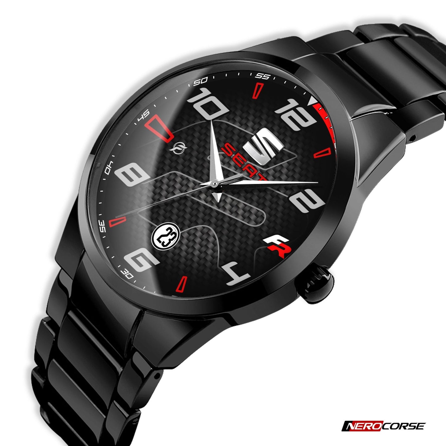 Caratteristiche tecniche dell'orologio modello Nerocorse: confezione in cartone rivestito inciso a laser. Il quadrante è realizzato con una superficie stampata ad alta definizione. Design unisex. La cassa ha un diametro di 40 mm ed è realizzata in acciaio inossidabile con finitura nera lucida. Il cinturino, anch'esso in acciaio inossidabile nero lucido, ha una larghezza di 20 mm e utilizza un sistema di chiusura con gancio rapido. L'orologio è dotato di un movimento al quarzo Epson alimentato a batteria. Il peso complessivo è di 114 grammi e offre una resistenza all'acqua fino a 3 ATM.