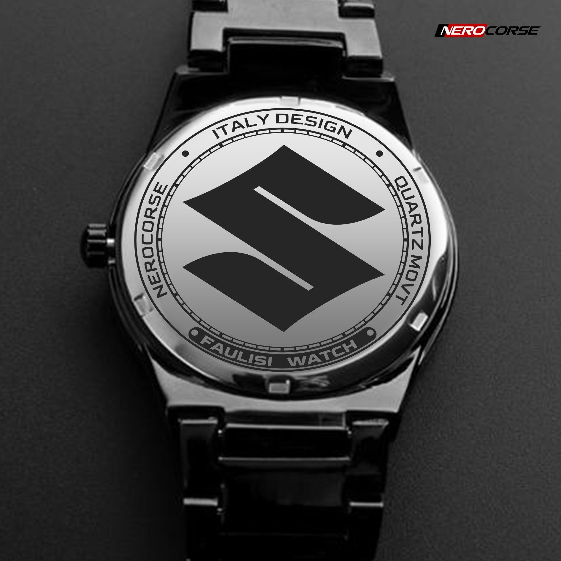 Caratteristiche tecniche dell'orologio modello Nerocorse: confezione in cartone rivestito inciso a laser. Il quadrante è realizzato con una superficie stampata ad alta definizione. Design unisex. La cassa ha un diametro di 40 mm ed è realizzata in acciaio inossidabile con finitura nera lucida. Il cinturino, anch'esso in acciaio inossidabile nero lucido, ha una larghezza di 20 mm e utilizza un sistema di chiusura con gancio rapido. L'orologio è dotato di un movimento al quarzo Epson alimentato a batteria. Il peso complessivo è di 114 grammi e offre una resistenza all'acqua fino a 3 ATM.
