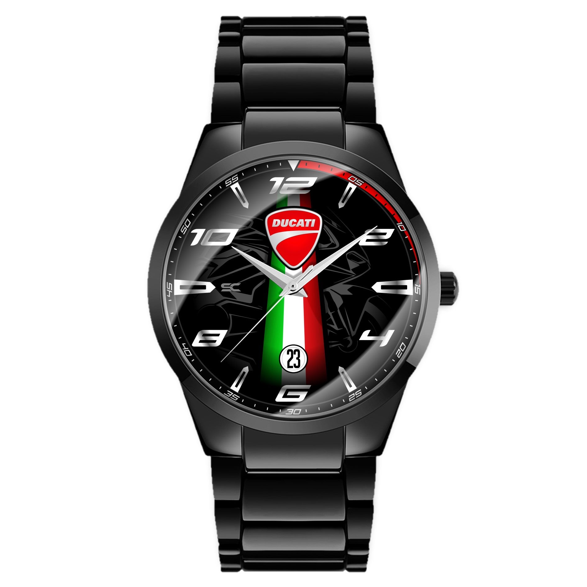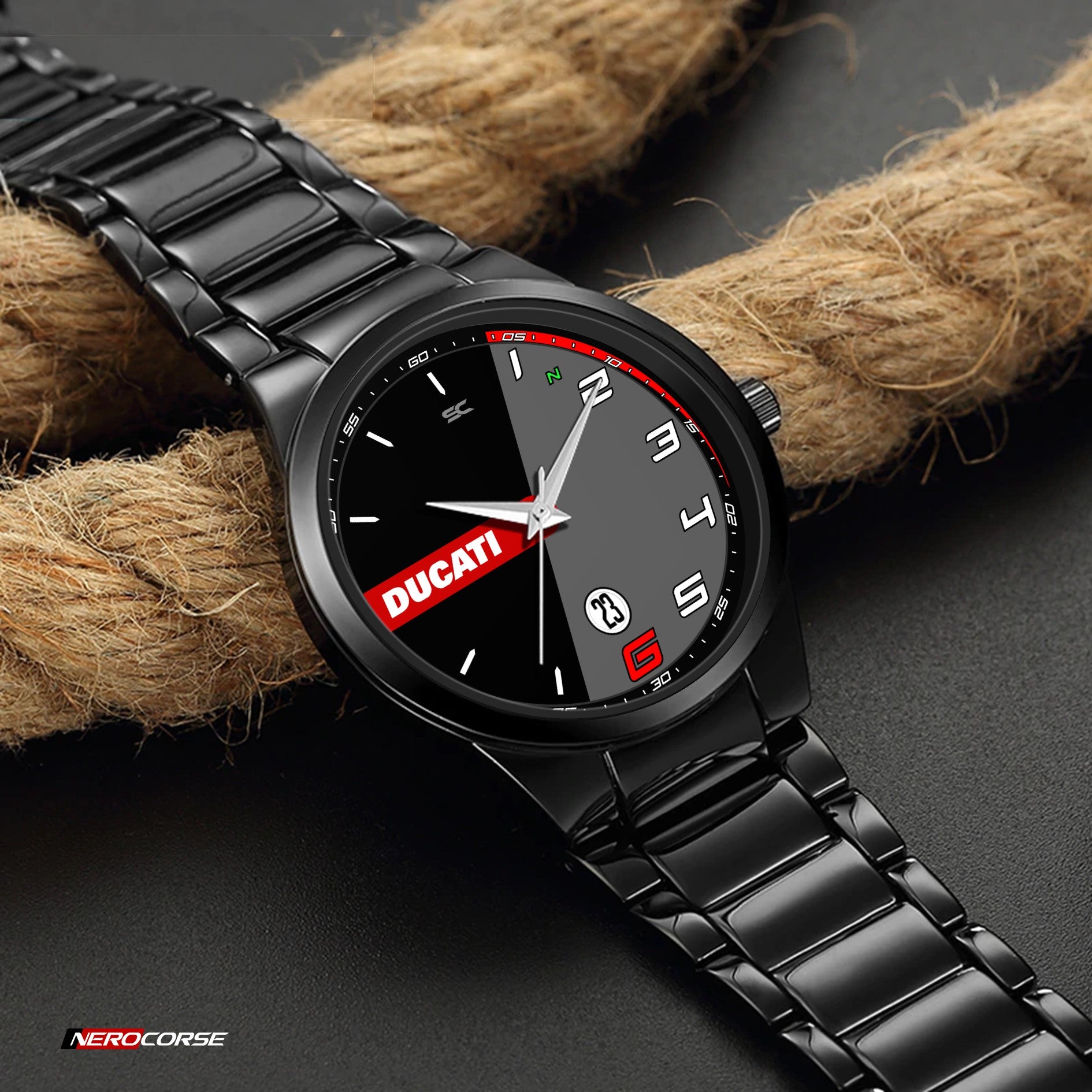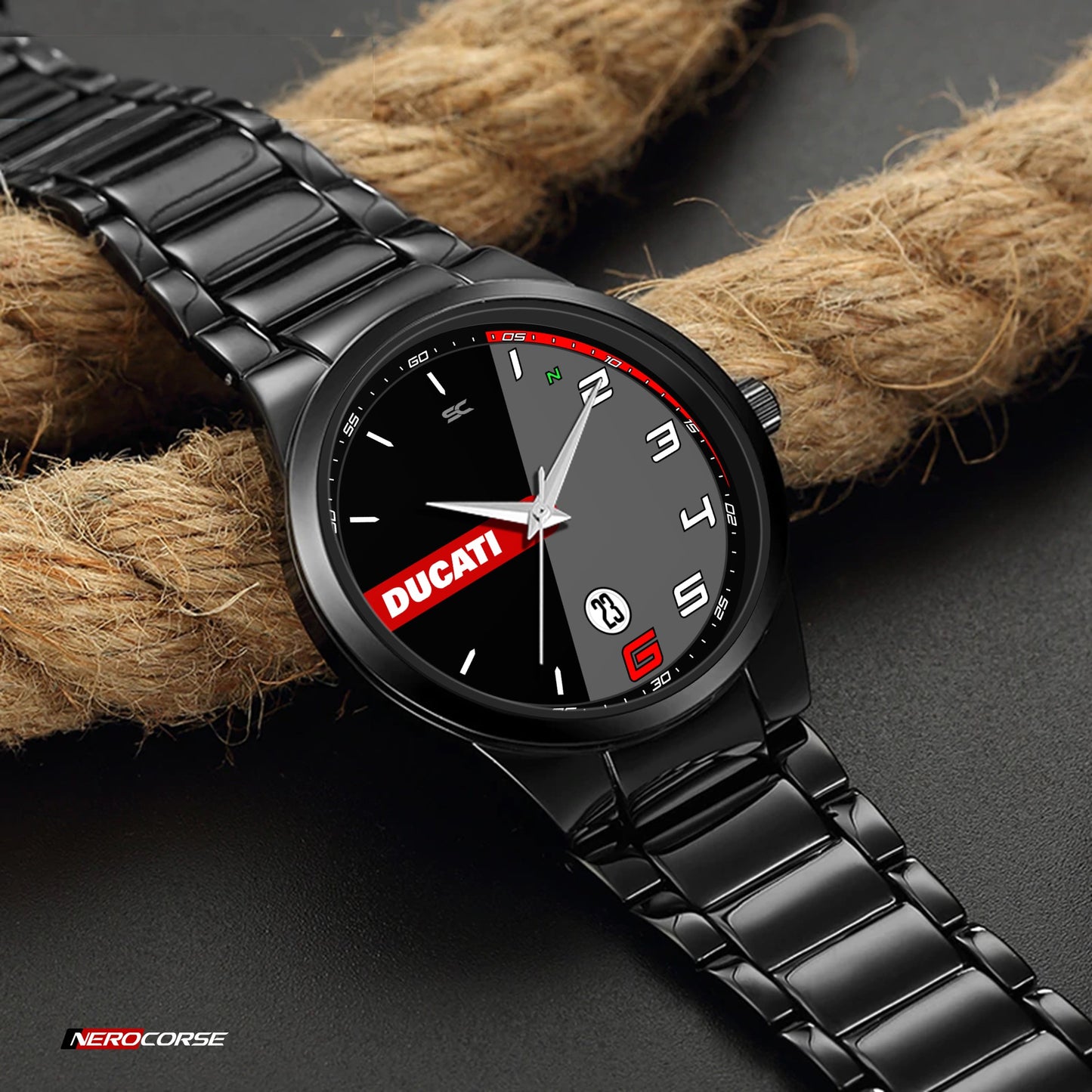 L'orologio monta un movimento al quarzo Epson giapponese con datario.