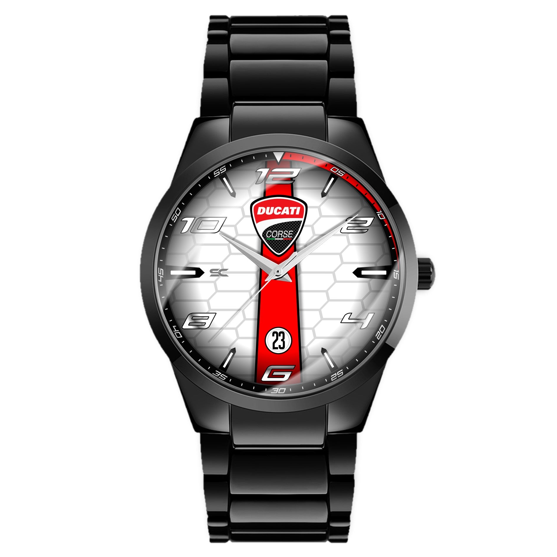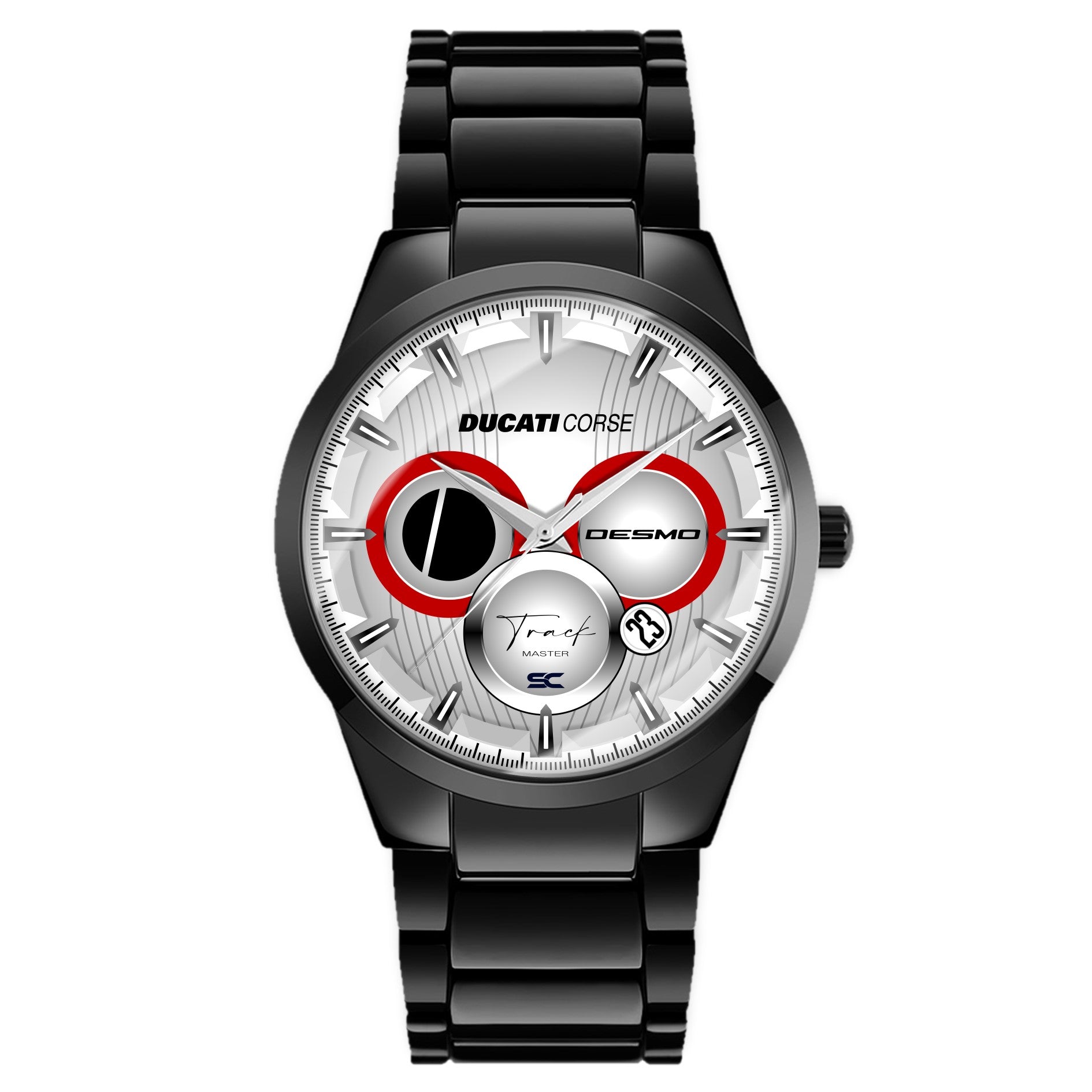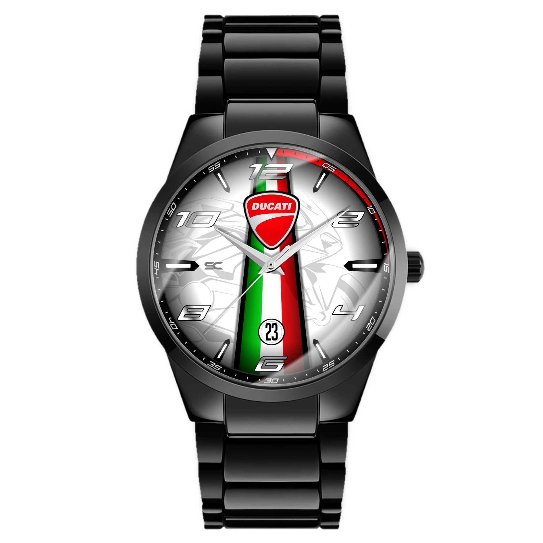 L'orologio monta un movimento al quarzo Epson giapponese con datario.