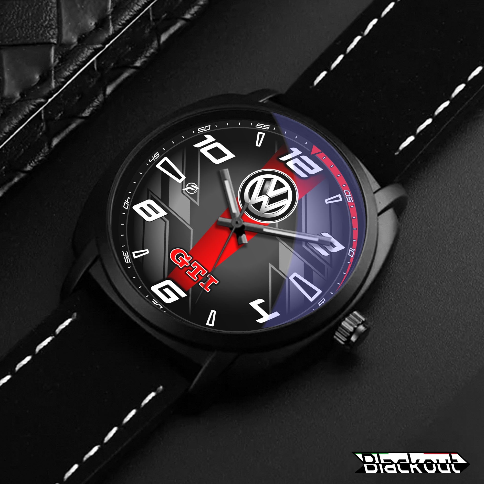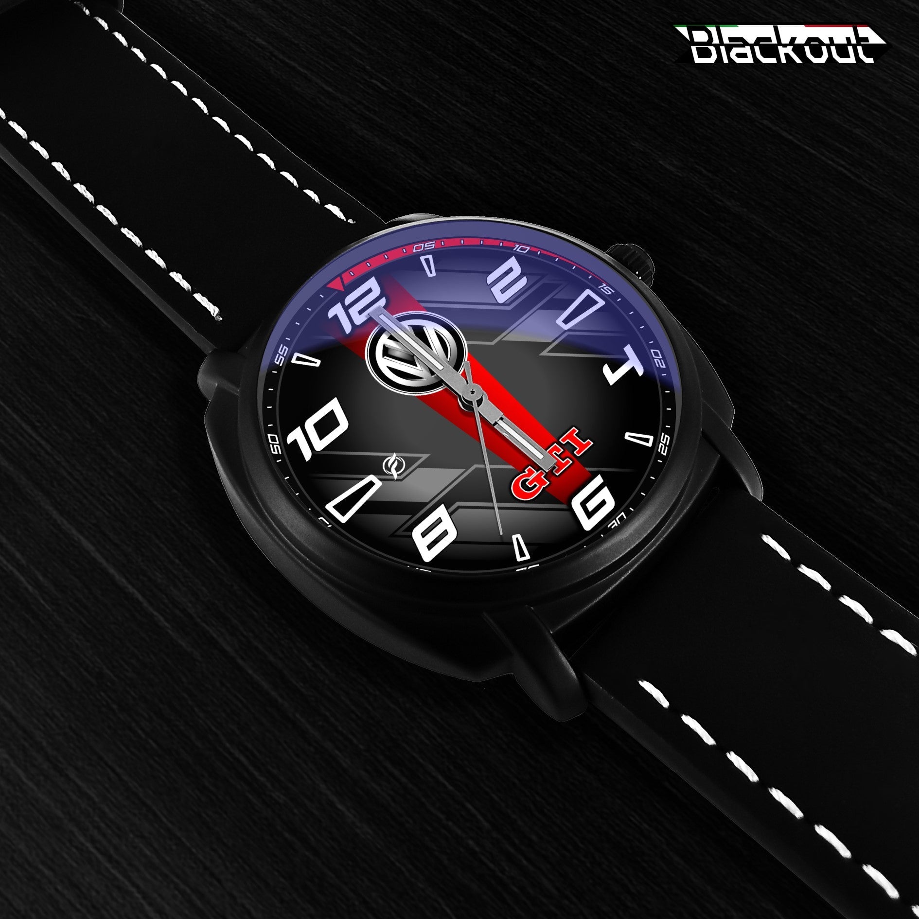 Caratteristiche tecniche dell'orologio Blackout: confezione in cartone rivestito inciso a laser, quadrante con superficie stampata da Canon, design unisex. La cassa ha un diametro di 42 mm ed è realizzata in acciaio inossidabile con finitura nera opaca. Il cinturino ha una larghezza di 22 mm ed è in eco-pelle con cuciture bianche. L'orologio è dotato di una fibbia come tipo di fermaglio e utilizza un movimento al quarzo Epson, alimentato a batteria. Il peso complessivo è di 56 grammi e la resistenza all'acqua è garantita fino a 3 ATM.